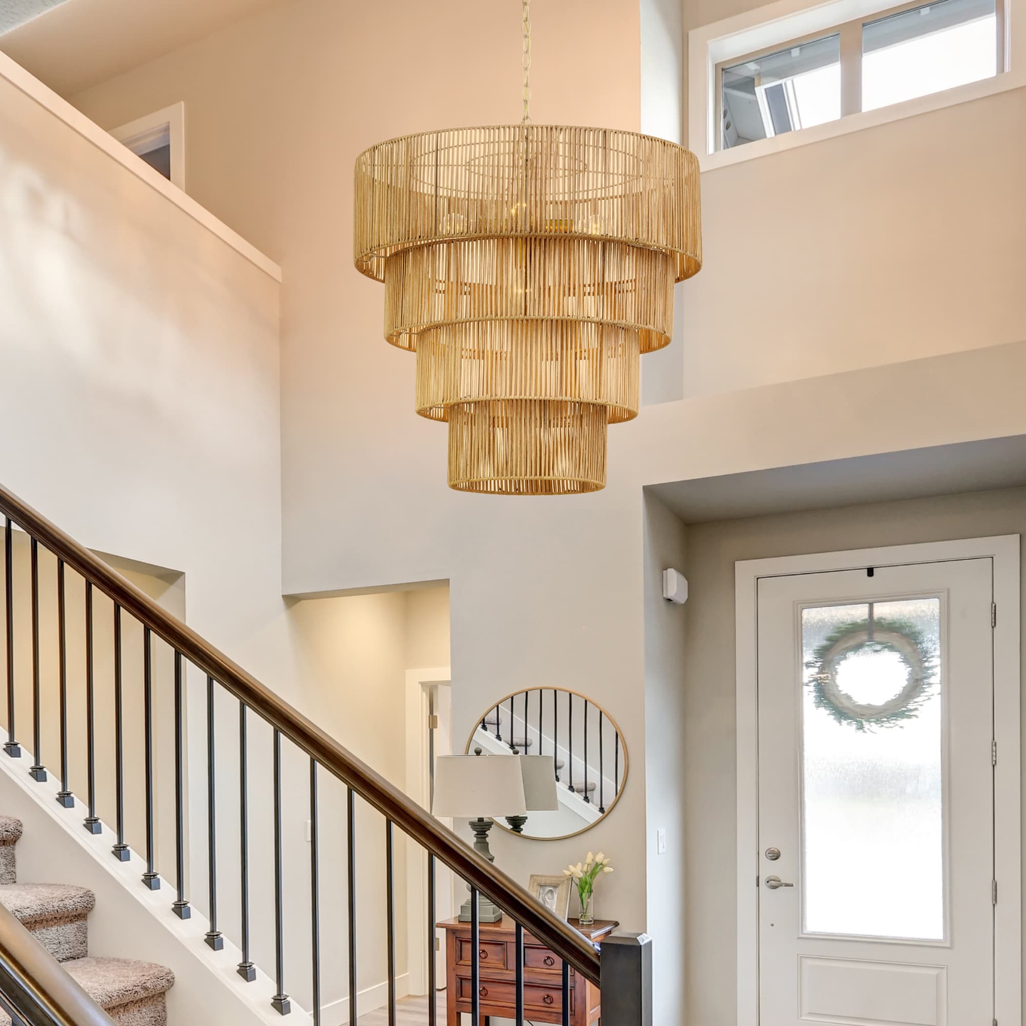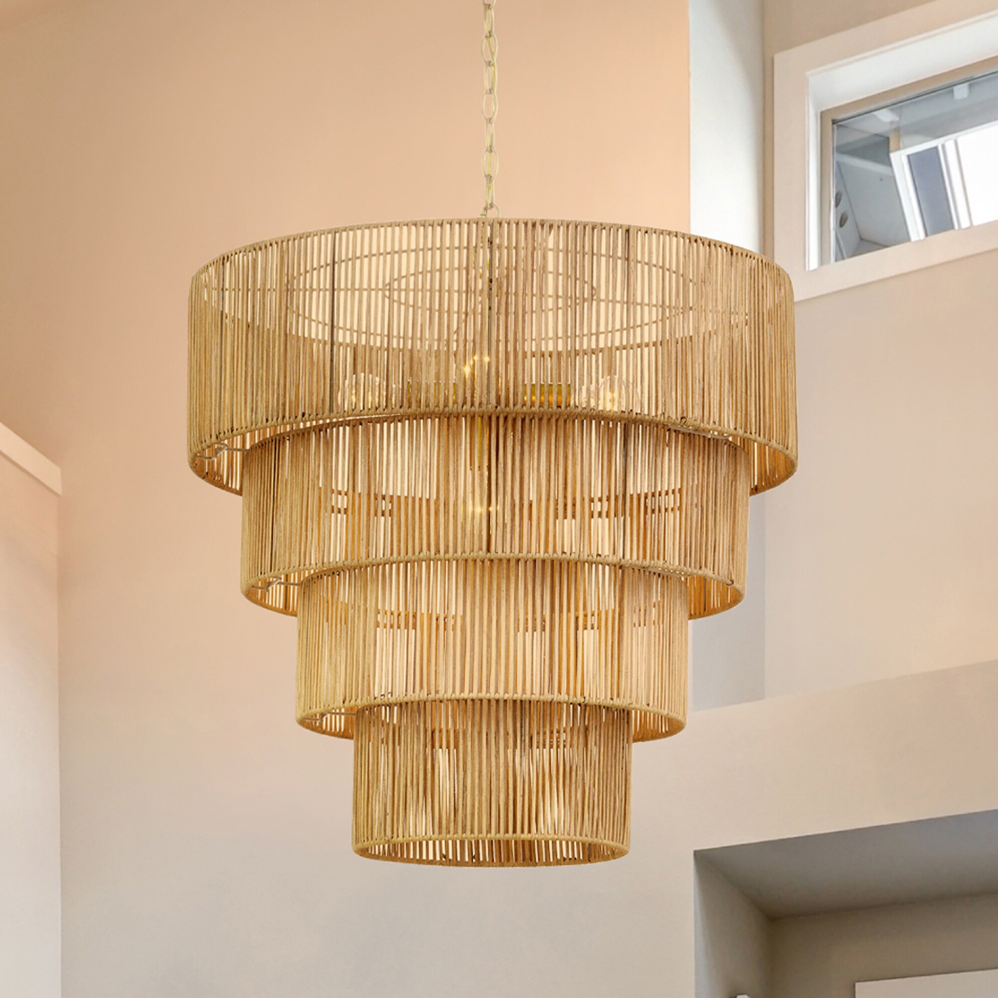 This 5-light chandelier is inspired by coastal aesthetics to add a natural feature to your space. Diffusing the light through the hand-made rattan shades, this chandelier can give your room the finishing touches it needs to really pop. Hanging this statement piece over your dining room, foyer, or any living area for a stunning impact.