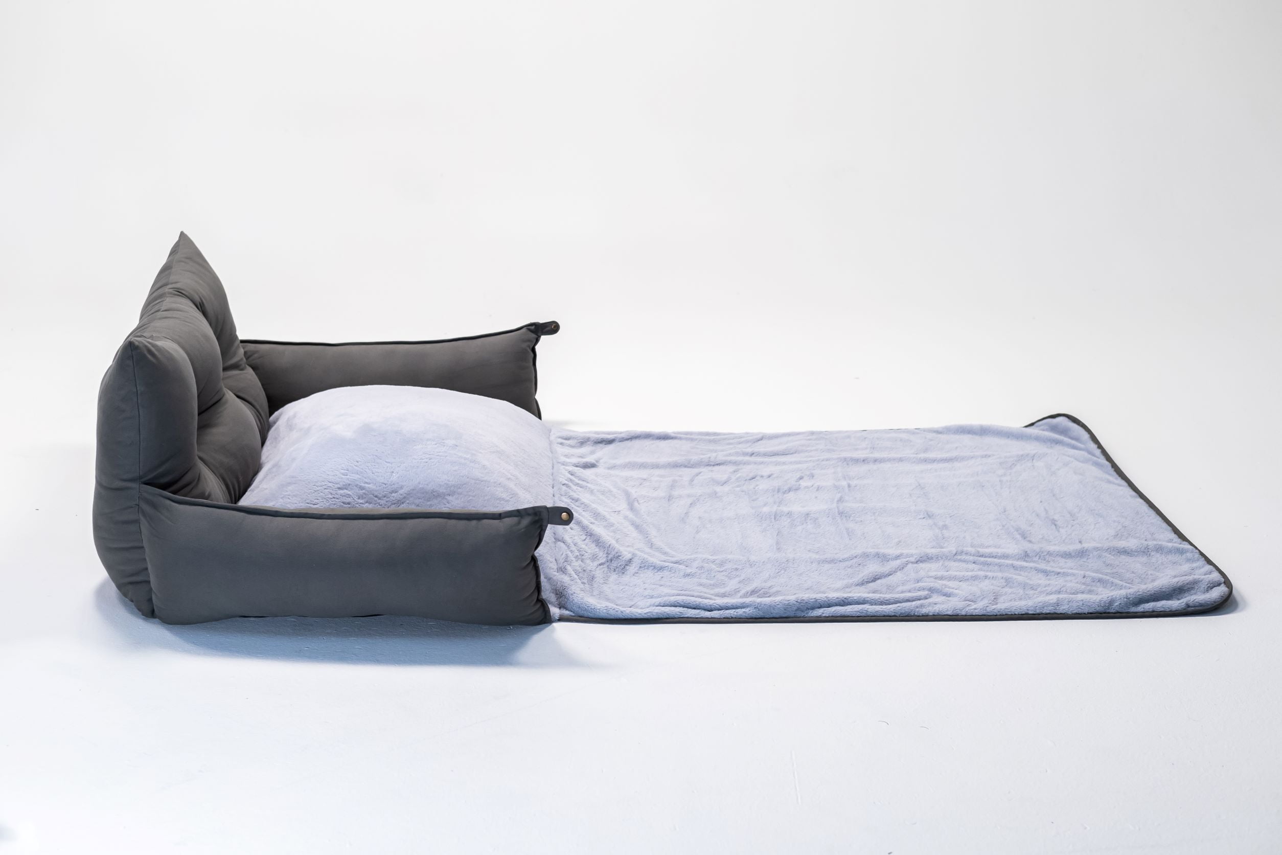 The Lucky Dog® Drift™ Series 3–in-1 Dog Bed with Attached Roll-Out Blanket combines quality with convenience. This innovative dog bed Instantly converts between a nesting bed, covered/blanketed nesting bed, and layout bed for ultimate versatility. Featuring an innovative roll-out faux fur fleece liner for a soft, inviting, and plush place for your dog to rest. Crafted from premium 100% cotton canvas material that also odor-resistant, breathable, hypoallergenic, and machine-washable, the Lucky Dog ® DRIFT Series Dog Bed is sure to give your dog the ultimate comfort experience. Designed with durability in mind, and available in four modern colors, this is the dog bed for dogs on the go and dogs at home.