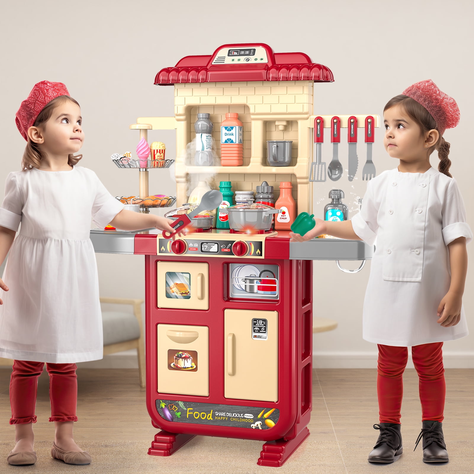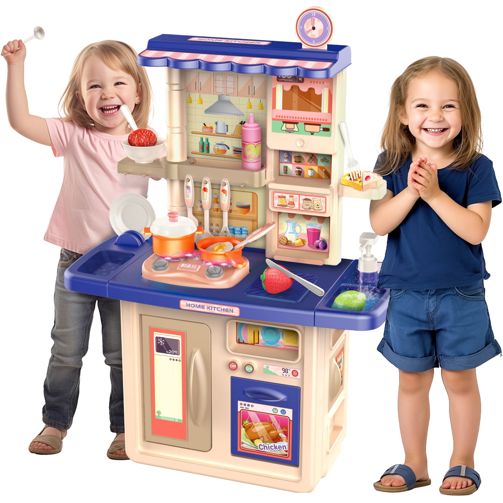 Lucky Doug Play Kitchen Play Toys for Girls Ages 3-5-8, Girls Kitchen Sets with Light & Sound & Spray Pretend Play Food for Kids Girls Age 3-8