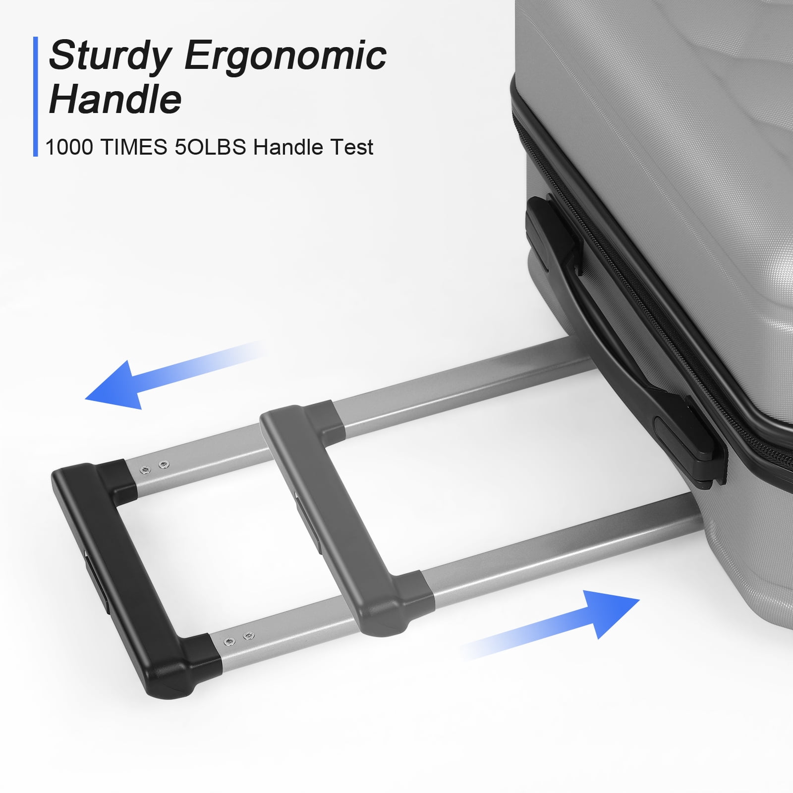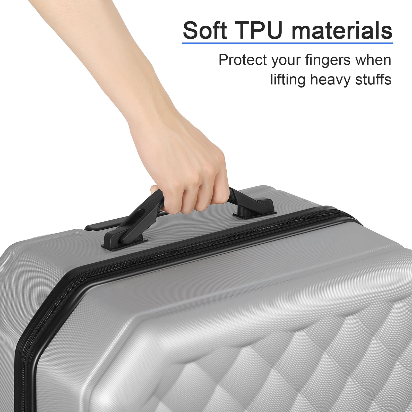 3 Pieces Hardshell Luggage Sets:It Maximize your packing power and the ideal checked bags for longer trips., can be stored one into another. Perfect for work travel, vacations, or as international carry-on Ergonomic Retractable Handle: Travel in comfort with the adjustable aluminum pull rod, designed for various height preferences. The 3-step telescoping handle goes up and down and fixes quickly with a push button. Convenient Maneuverability: Equipped with 360-° spinner wheels, these suitcases offer effortless mobility in any direction, allowing you to navigate crowded airports and busy streets with ease. Thoughtfully Designed Interior:Keep your essentials organized and secure with our explosion-proof zipper technology, which offers added protection against piercing by sharp objects. pragmatic design: The packing straps hold your clothes in place, a zipper mesh pocket for anything you want to keep separate.