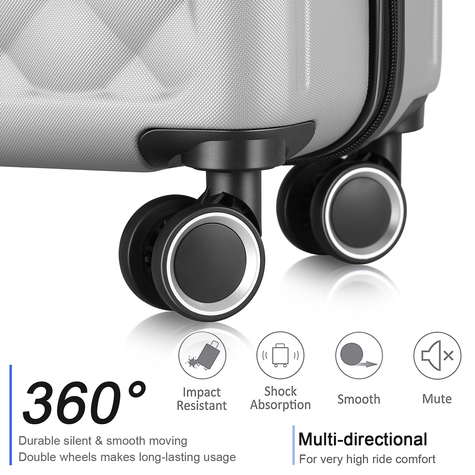Luggage 3-Pieces Set ABS Durable Suitcase Silver 20″24″28″