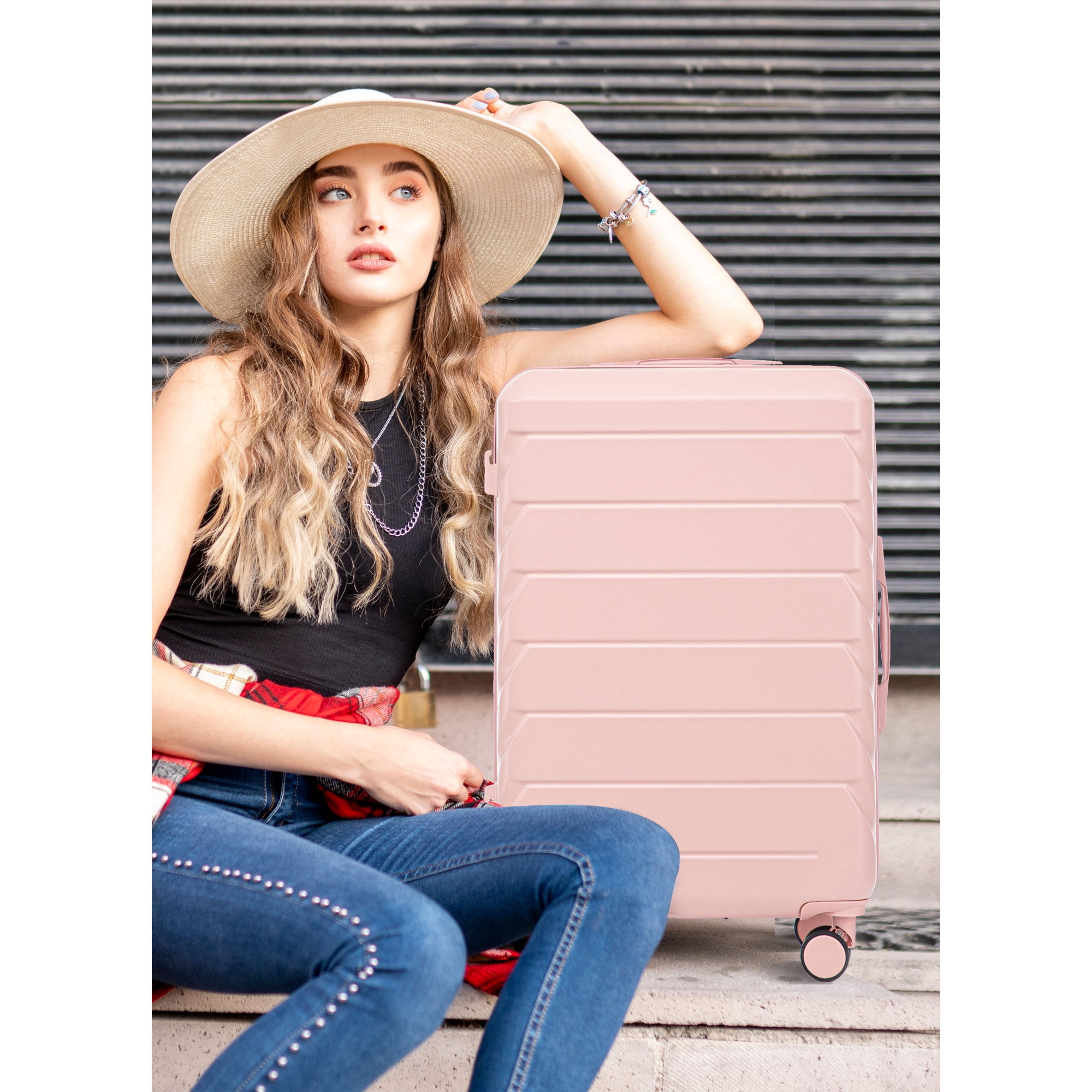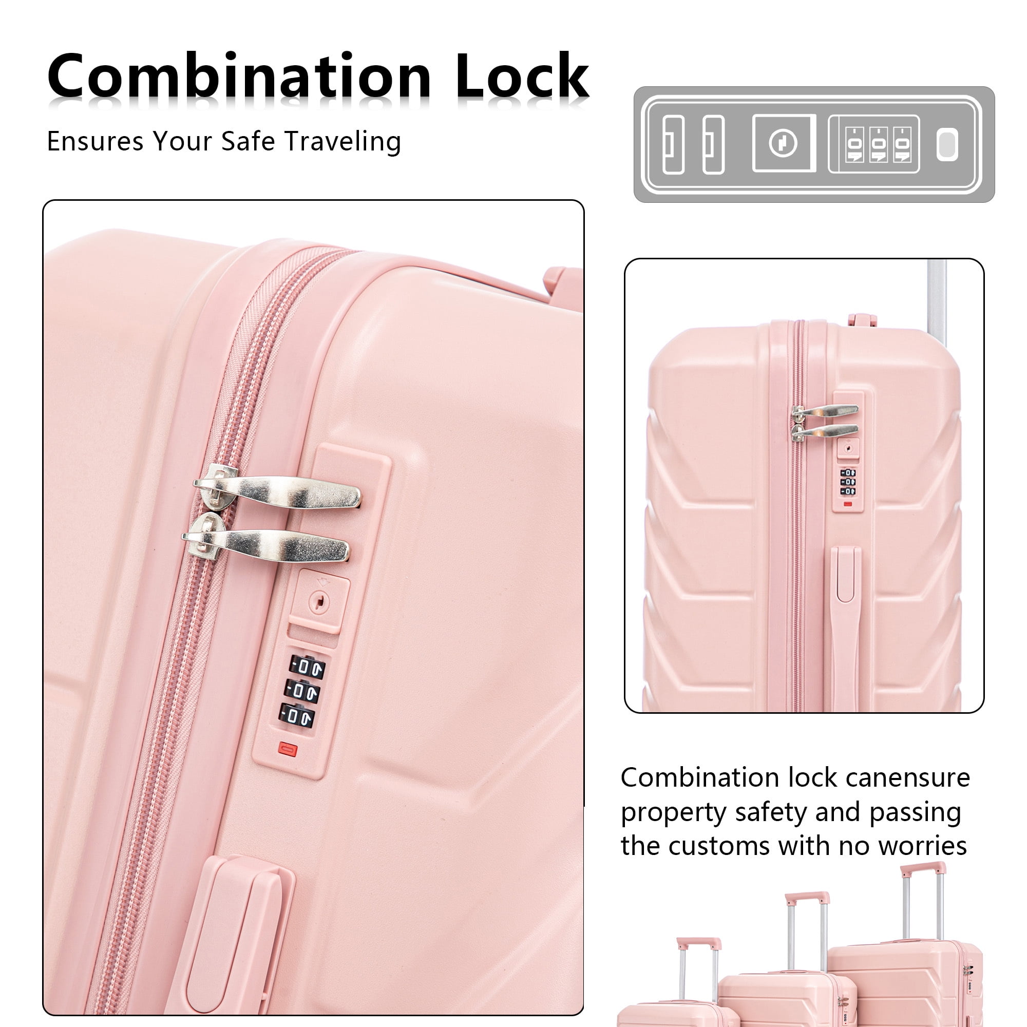 Durable & Waterproof:Our family suitcase set features sturdy watertight ABS external, which is easy to clean and long-term use. It can carry a large weight while having four swivel wheels that can move effortlessly in any direction. Full-Capacity Design Inside Suitcase: Large storage space and fully lined interior with zippered compartment for this hard side luggage sets to keep your items well organized. Low profile top and side handle provide for ease in handling. Retractable Handle:The ergonomically designed push-button 3-step adjustable telescopic handle makes opening and closing a breeze. What’s more, it fits any size hand and reduces stress when climbing stairs. Modern Appearance:The stylish and smooth vertical stripe design of the rolling luggage makes it more resistant to pressure and wear and brings a good mood to your journey. It includes four molded side feet, they allow the luggage to remain upright even when standing on its side. Feature: Feature 1:Retractable Handle—The ergonomically designed push-button 3-step adjustable telescopic handle makes opening and closing a breeze. What’s more, it fits any size hand and reduces stress when climbing stairs. Feature 2:Full-Capacity Design Inside Suitcase—Large storage space and fully lined interior with zippered compartment for this hard side luggage sets to keep your items well organized. Low profile top and side handle provide for ease in handling. Feature 3:360° DOUBLE SILENT SPINNER WHEELS 1.Silent wheel, no noise, comfortable and convenient. 2. Double row protection, strong load capacity. 3. 360° smooth and arbitrary rotation, light and convenient. Feature 4:Anti-scratch ABS Hard Shell Enhanced thickening Anti-scratch ABS material build; strong resistance to stress; nontoxic, odour-free, impressive resistant to low and high temperature, an innovation material in hard luggage industry. Feature 5:Large capacity 1.Large space, luxurious interior. 2.The fixed buckle prevents the clothes from shifting, is convenient and practical. 3.There are multiple layers of space, the clothes are layered, clean and easy to take, saving space.