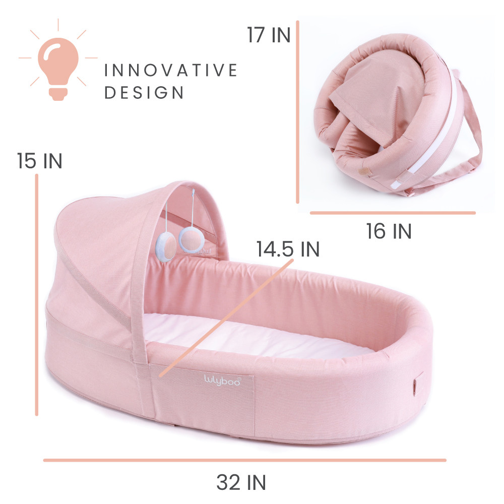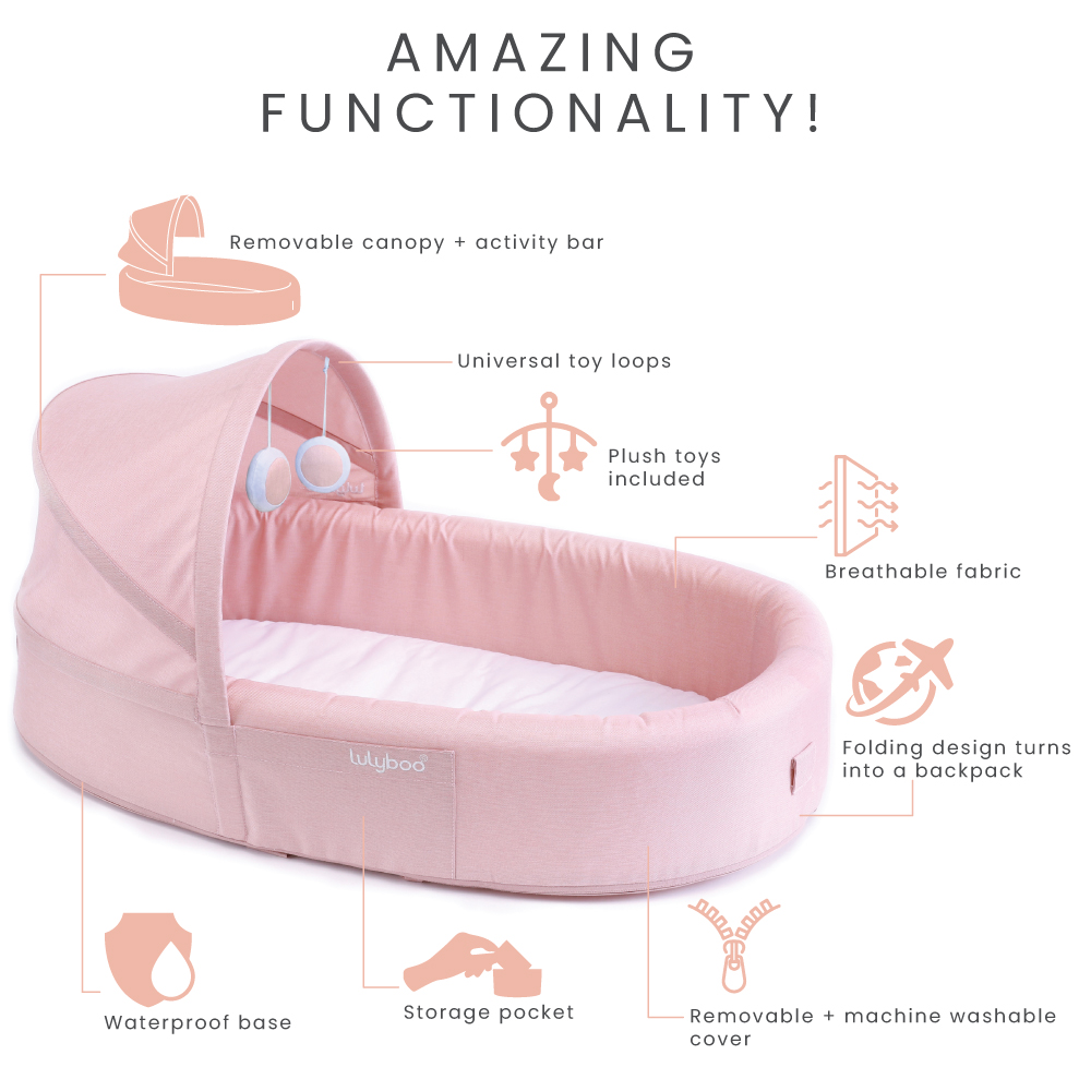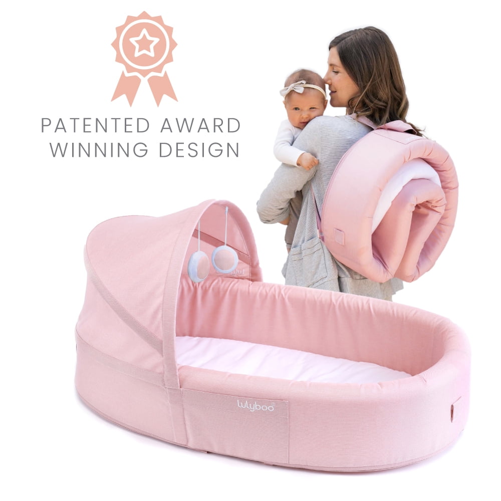 Lulyboo to-Go Baby Lounge – On The Go Baby Lounger Backpack – Combines Crib, Playpen and Changing Station, Blush