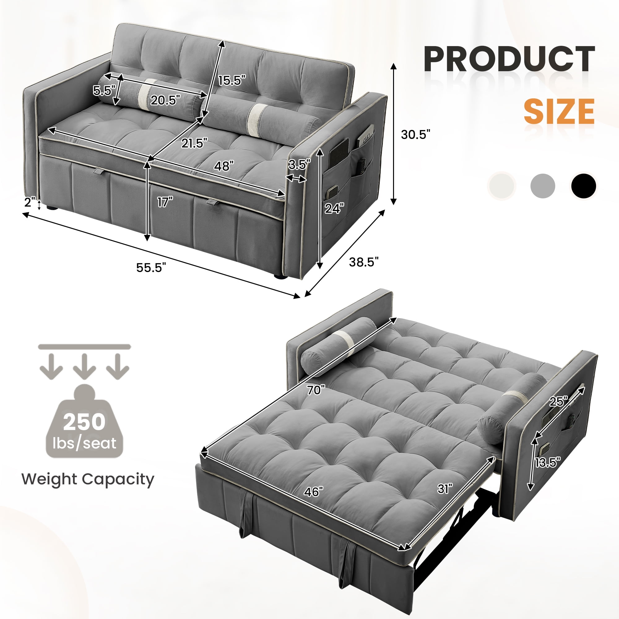 A masterpiece that combines sleek modern design with everyday practicality. This space-efficient and chic furniture piece effortlessly adapts to any room in your home, whether it’s your living room, bedroom, or home office. The Futon Sofa Bed is more than just a piece of furniture; it’s an invitation to relax. Its foam-filled cushioning provides supreme comfort, making it the perfect spot for lounging, napping, or simply unwinding after a long day. The clever design allows it to transform seamlessly from a stylish sofa to a cozy bed in an instant, ensuring you’re always prepared to host friends or family for a movie night or a sleepover. Lunale Convertible Futon Sofa Bed, 55″ Upholstered Pull Out Futon Sofa Bed, Tufted Velvet Loveseat Sleeper Sofa Couch for Living Room, Gray