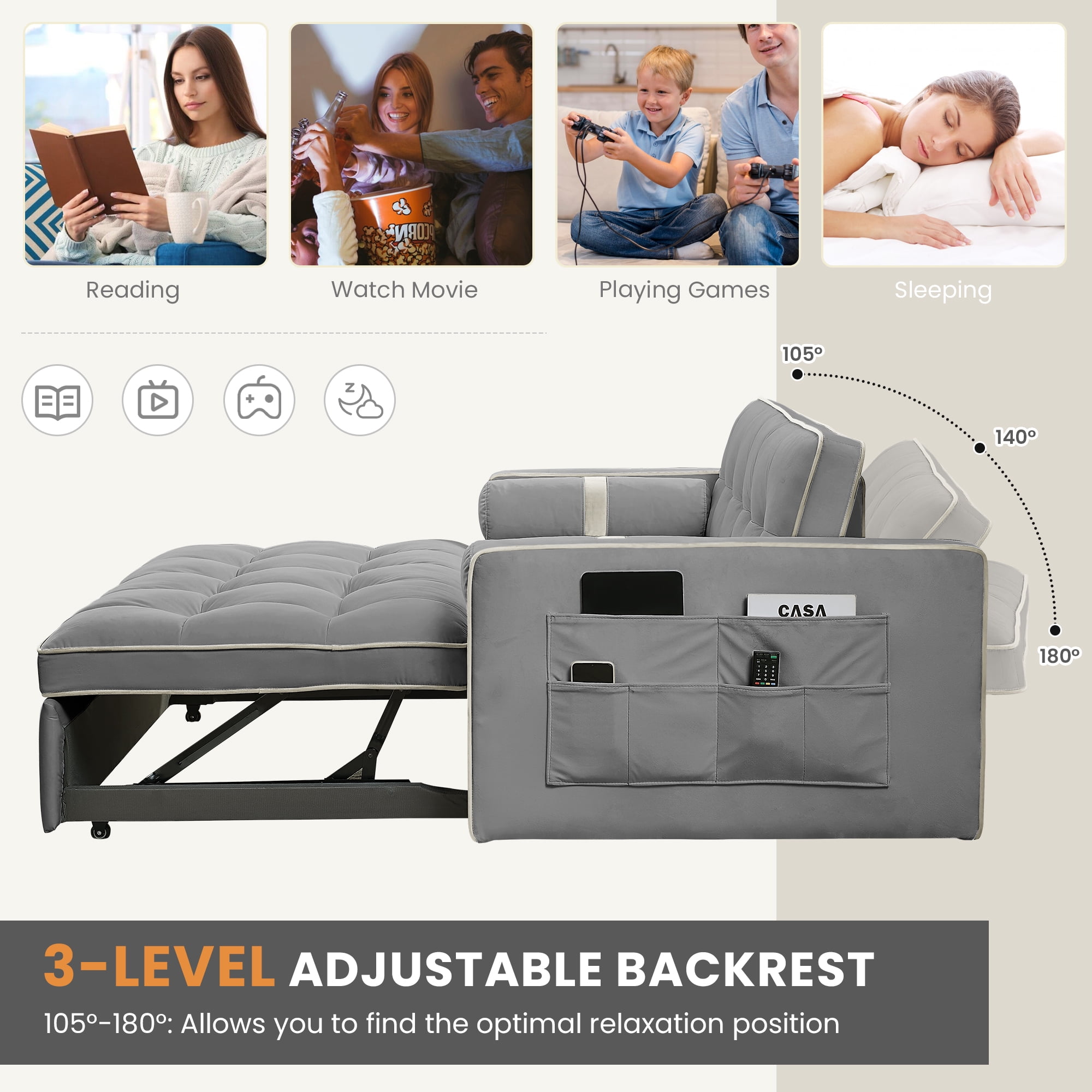 Lunale Loveseat Sleeper Futon Sofa Bed 3 in 1 Convertible Design- You can convert between 2 seater sofa and lounge chaise and sleeper bed. Adjustable backrest – 105°(Seat)/145°(Lay)/180°(Sleep) Compact design – Space-saving Suitable for Any Scene, perfect for living room or apartment