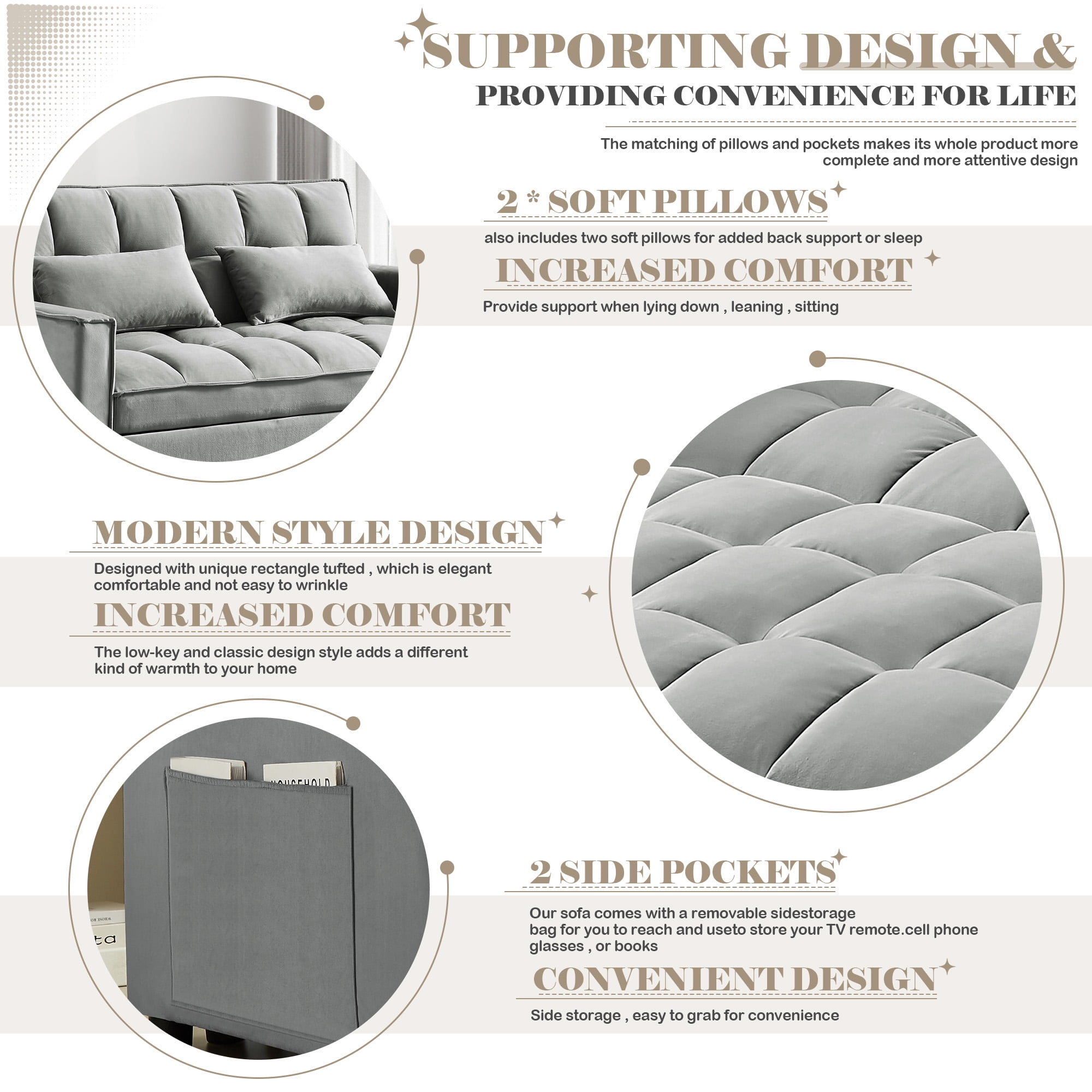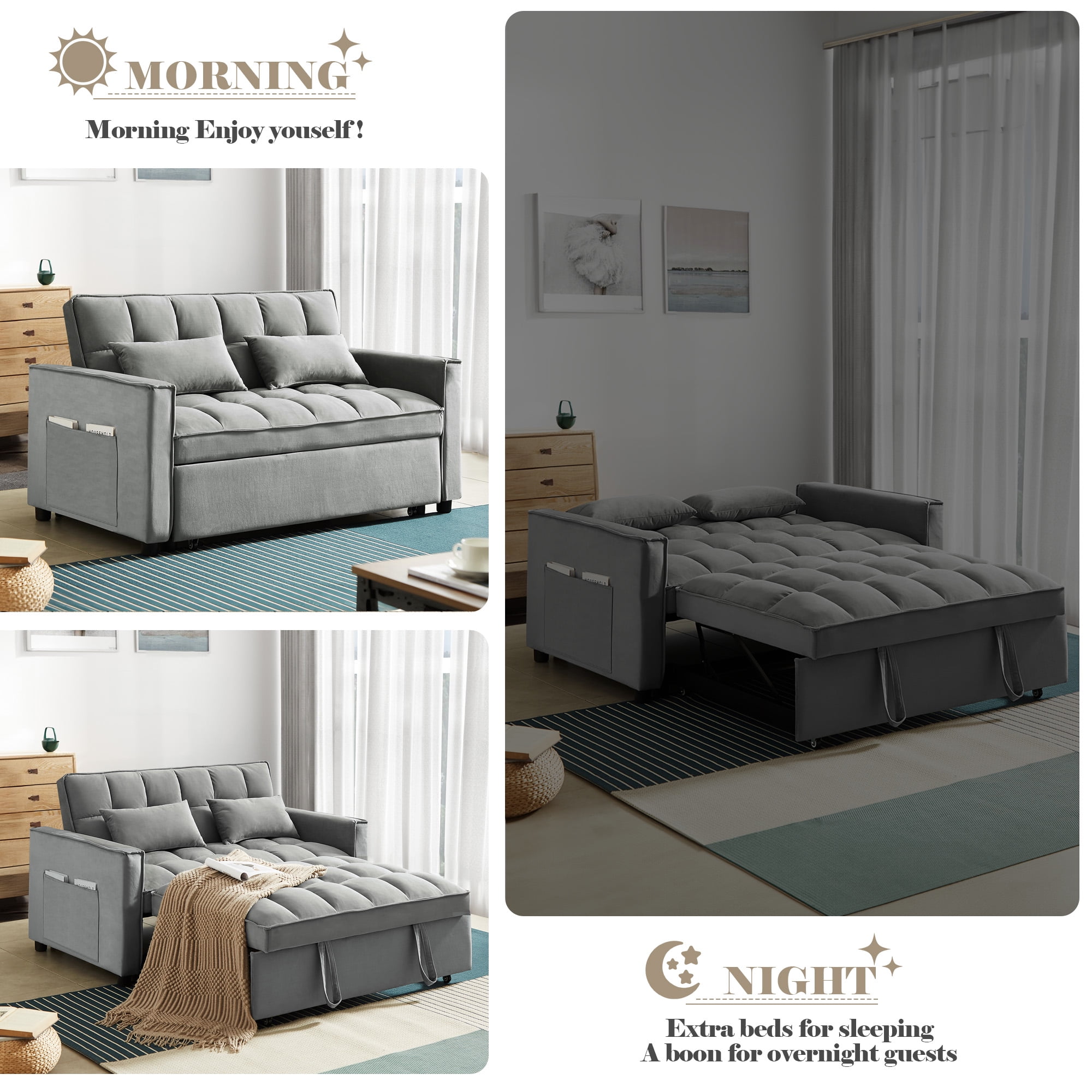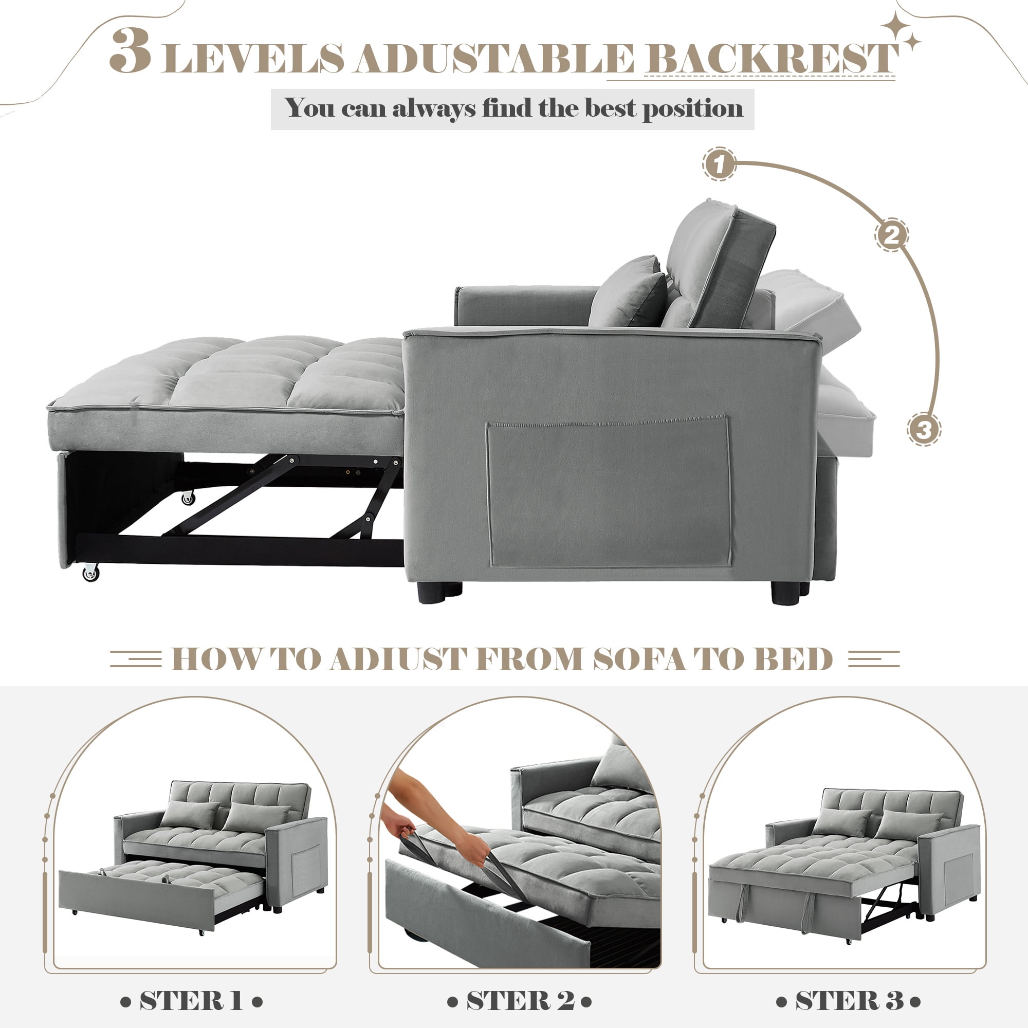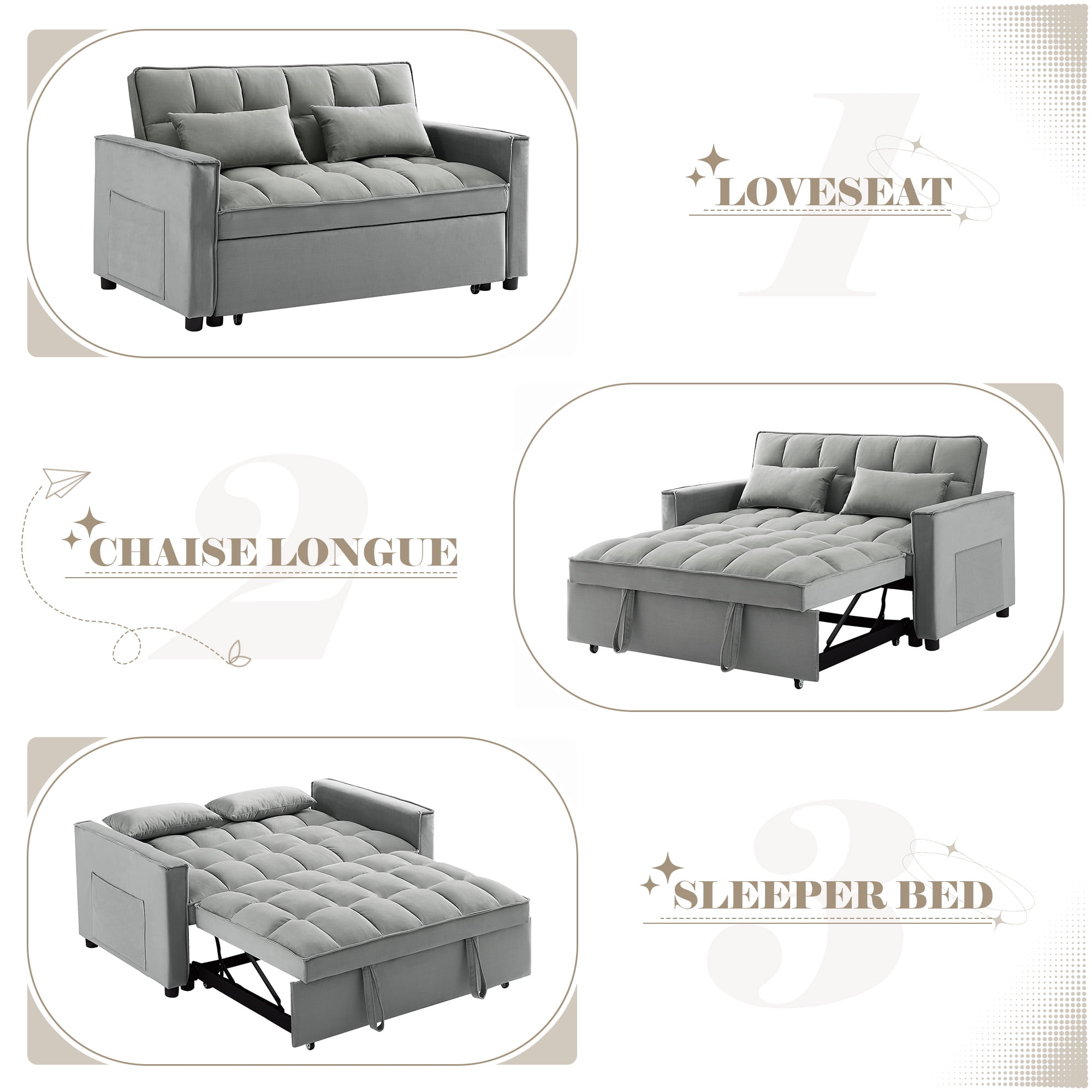 Lunale Convertible Loveseat Sleeper Sofa Bed 3-in-1 Convertible Design – It can be easily converted from a loveseat to a chaise lounge or a sleeper bed 3-level adjustable backrest – Meet your different height needs to relax or sleep Space saving design allows it to fit in any room in your home Comes with two side pockets and two pillows, bringing you more comfort