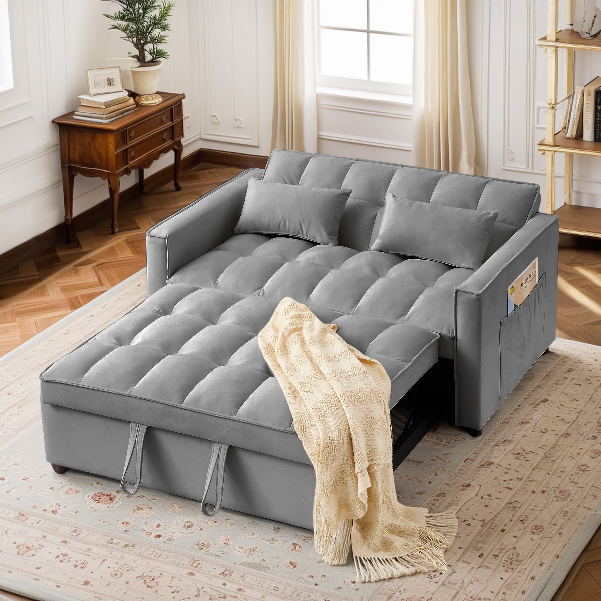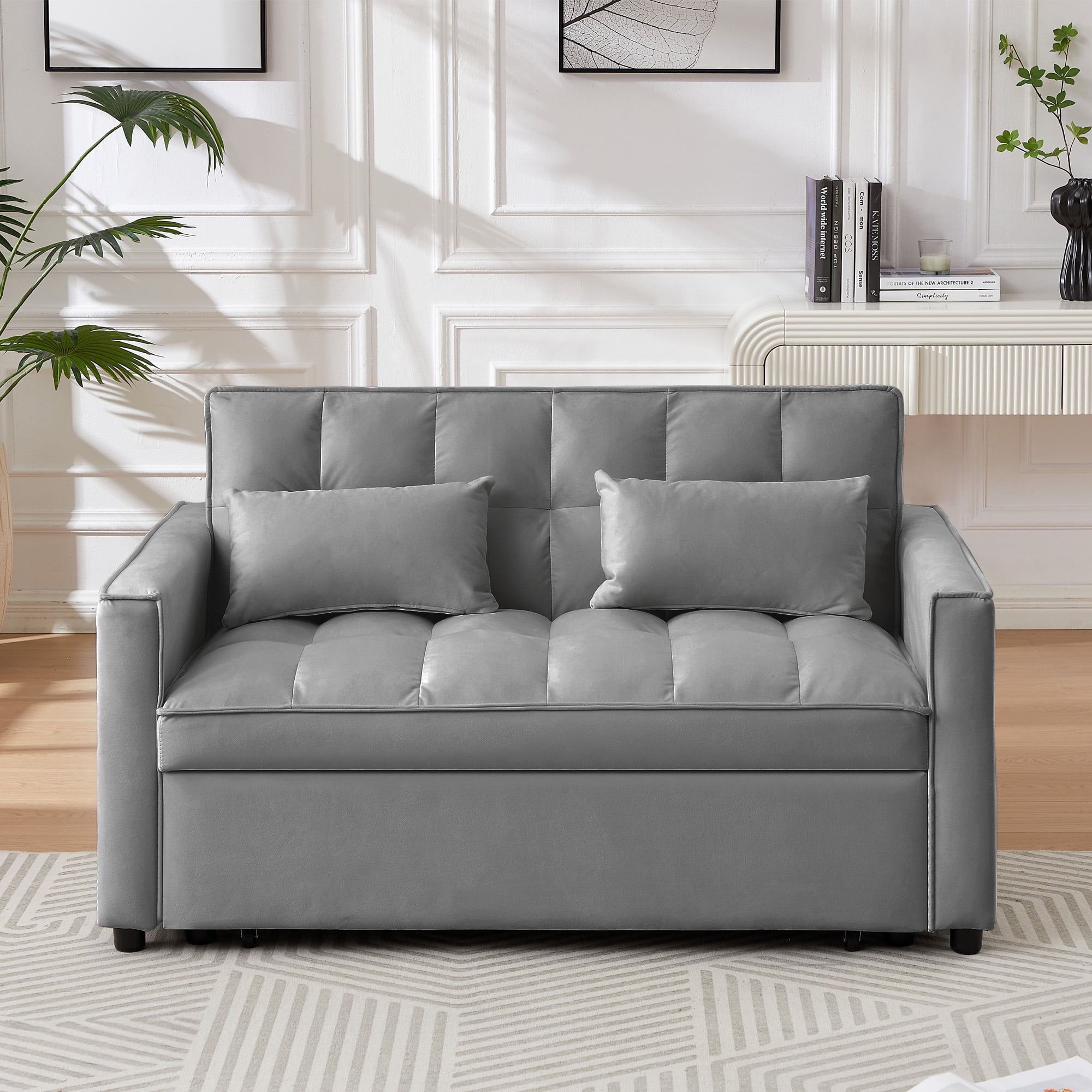 Lunale 55″ Convertible Loveseat Sleeper, Tufted Pull Out Sofa Bed for Living Room, Gray Velvet