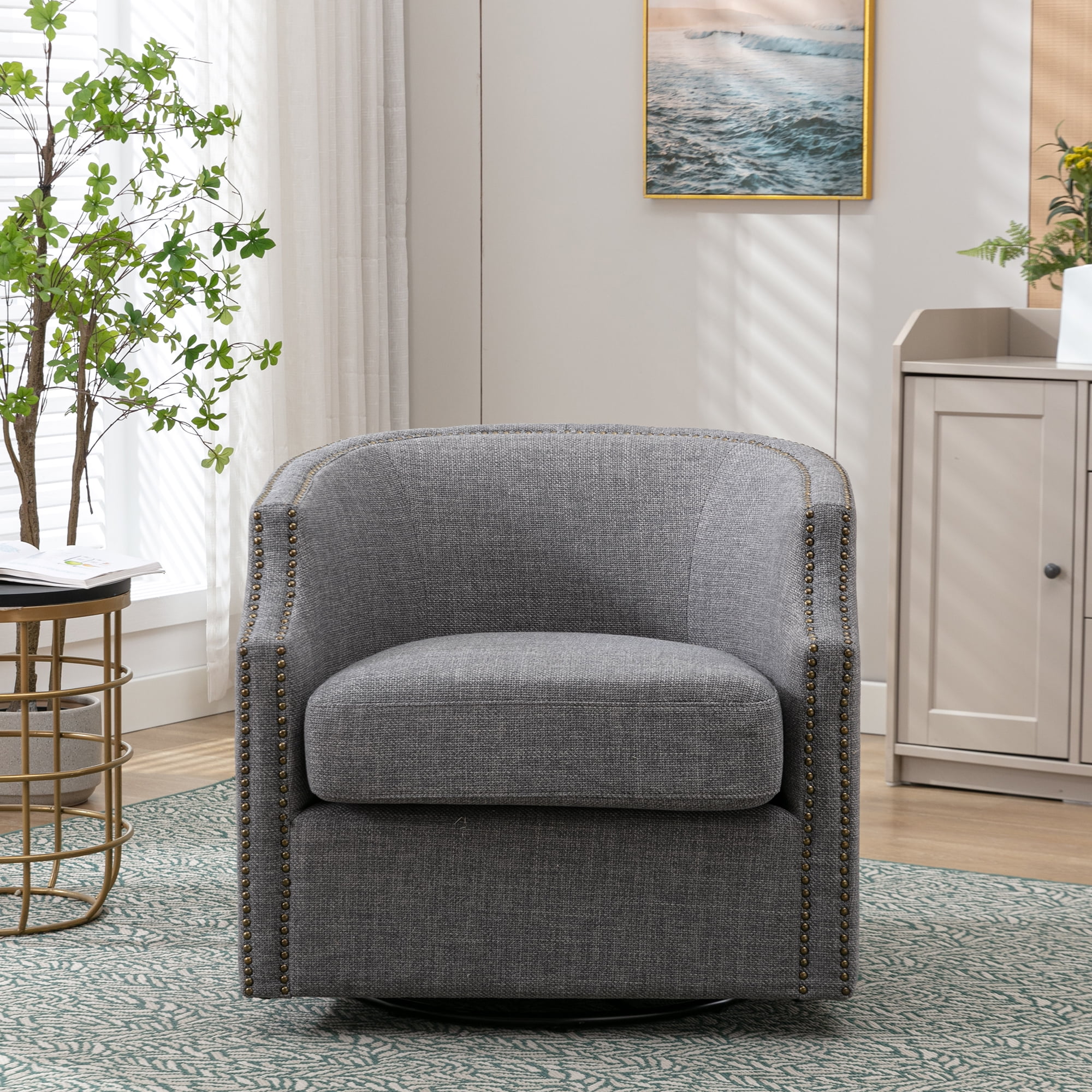 Lunale Swivel Accent Barrel Chair 360° swivel and gentle gliding Curved and nail armrests design Comfortable to seating Perfect for living room and nursery