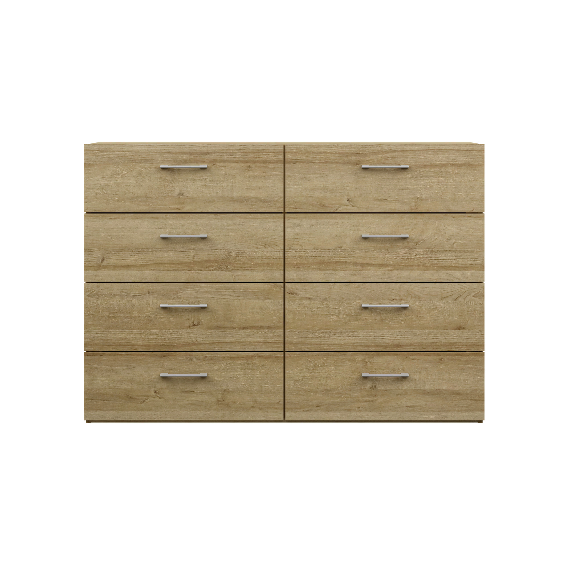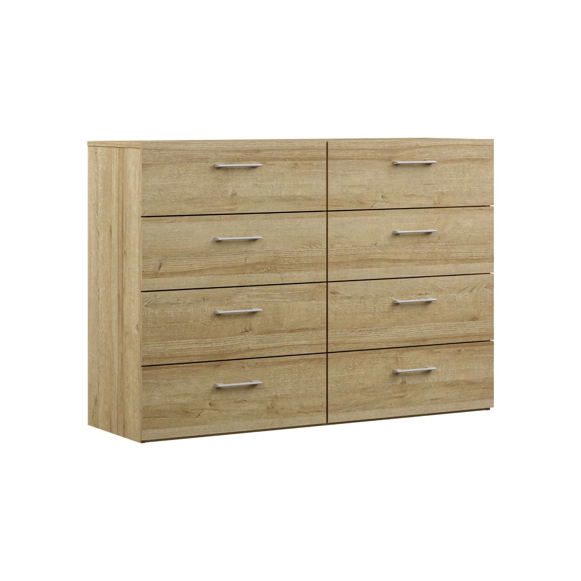 Natural finish Durable metal glides Made of composite wood and MDF Overall Dimensions: 36″ H x 51.25″ W x 16.25″ D Includes anti-tip anchor hardware Ship in one box. Adult dresser for residential use only Dust and polish with non-abrasive cleaners Assembly required. Estimated assembly time 2 hours.