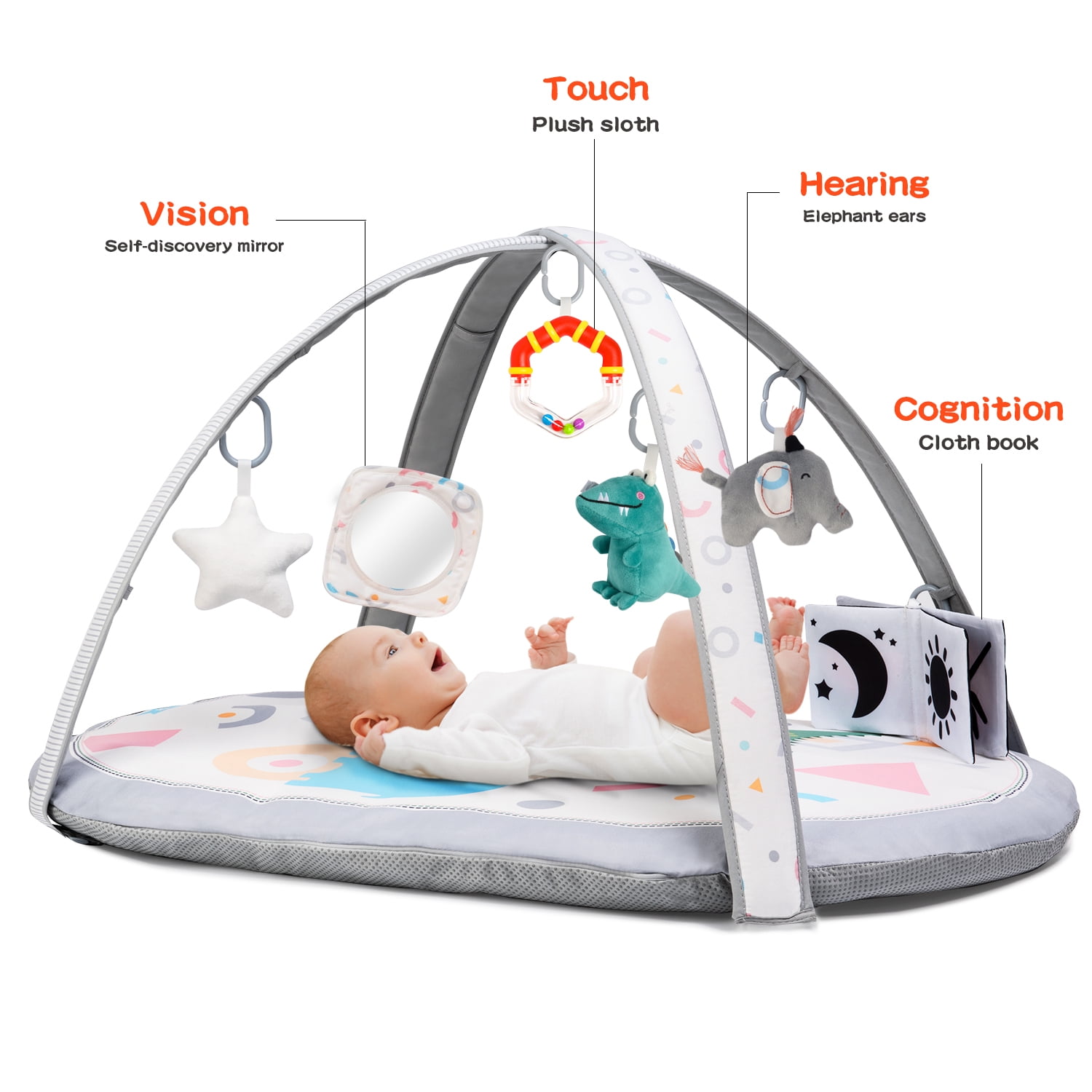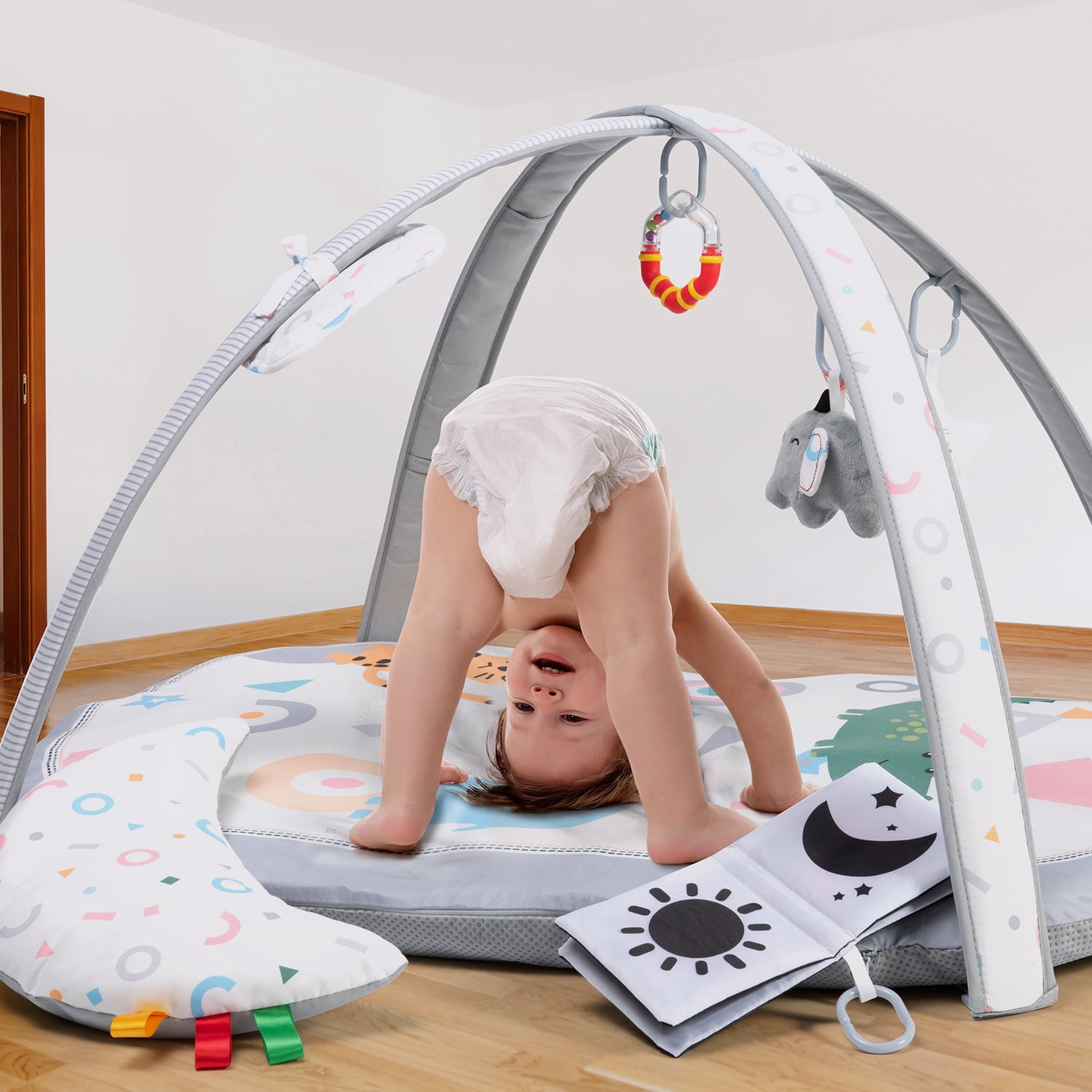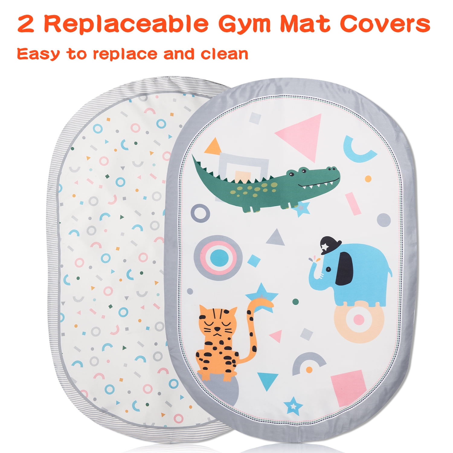 Lupantte 7-in-1 Baby Activity Gym, Baby Learning Toys Gym Mat with 6 Toys 2 Replaceable Washable Mat Covers,Baby Learn Mat, for Newborn