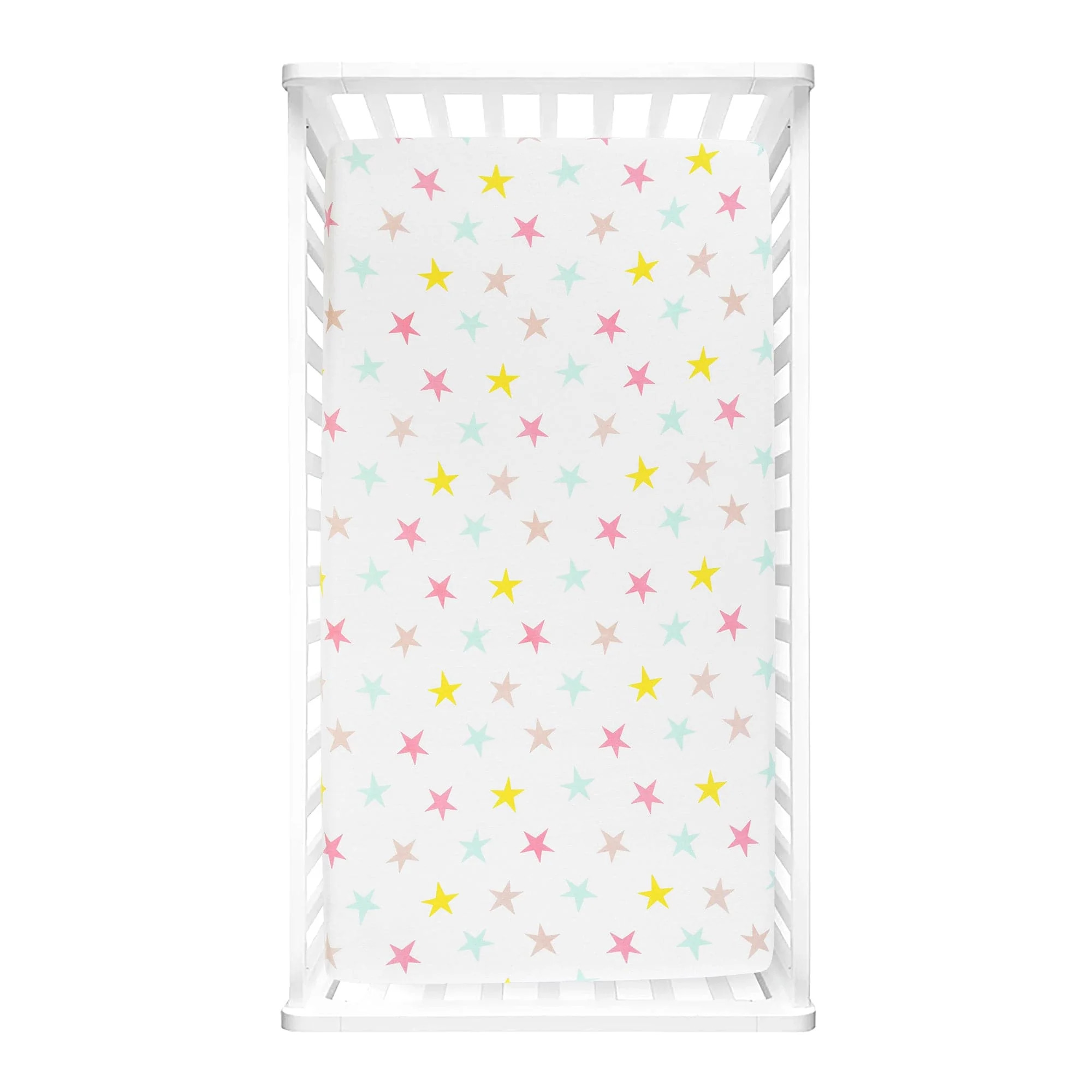 Lush Decor 100% Organic Cotton Jersey Unicorn Heart Rainbow Star Organic Cotton Fitted Crib Sheet Multi 2Pk 28x52x9