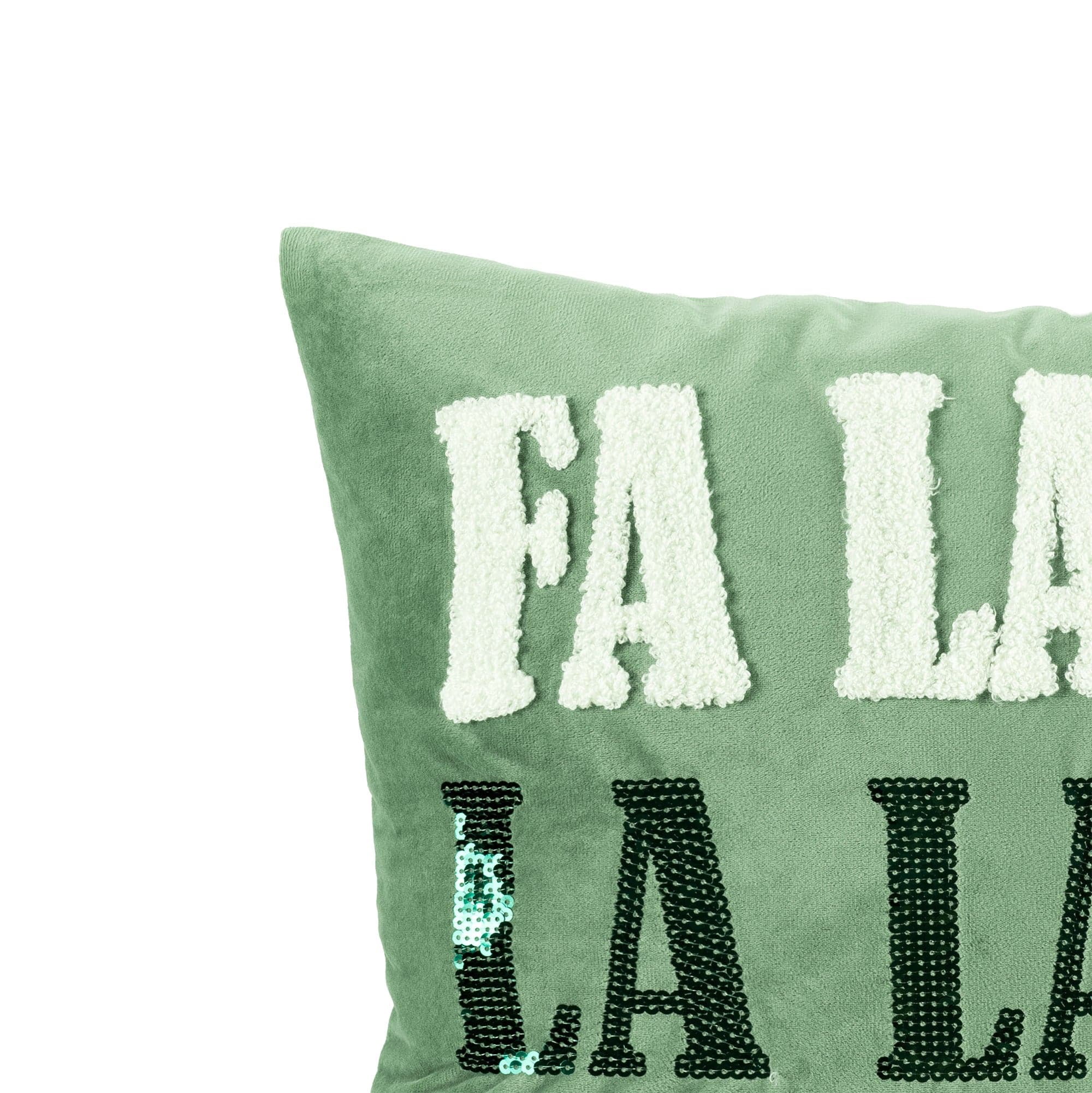 Get into the Christmas spirit with this lyrical Fa La La La Decorative Pillow. Embellished with a variety of textures, this text covered pillow spreads cheer into any room. Pair this classic holiday shade with accents in reds and whites for a complete holiday-themed vignette. Looking for something to add a little extra holiday cheer to your home? Look no further than this Fa La La La Decorative Pillow! This festive pillow has a sprinkle of texture all over! Shimmering sequins and soft sherpa text decorate this pillow and are sure to brighten that holiday spirit. This Fa La La La Decorative Pillow is the perfect addition to any Christmas decor, and is sure to bring a smile to everyone who sees it. This faux velvet pillow is soft and textured, adding dimension to your home decor. The Fa La La La Decorative Pillow measures 20 inches on each side. The square shape accent pillow is made in a standard size that is large enough to make an impact on your design but not so big that they will overwhelm the look of the room. Nothing adds comfort and character to your sofa, love seat, chair or bed like a stylish pillow. Offering a high impact at accessible prices, decorative pillows are a quick and easy way to pull together a room and tell your decor story. Update your style or create a fresh seasonal look with our Fa La La La Decorative Pillow. This polyester filled Fa La La La Decorative Pillow has been vacuumed packed as a part of our sustainability commitment to reduce packing material and decrease our carbon footprint. When it is time to clean the Fa La La La Decorative Pillow, please do not stick this item in the washer or dryer. They should be spot cleaned only. Includes: 1 Pillow Size: 20″W x 20″H Fabric Content: 100% Polyester Fill Content: 100% Polyester Faux Velvet Sequins Sherpa Tufting Detail Zipper Closure Knife Edge Made In China Care Instructions – Spot Clean