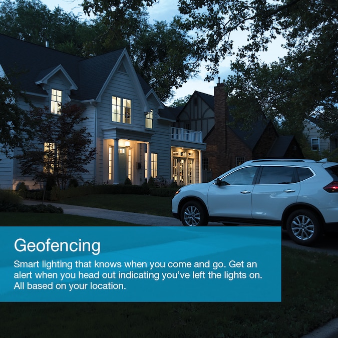 - GEOFENCING: Smart lighting that knows when you come and go – get an alert when you head out indicating you’ve left the lights on or automatically set lights to turn off – all based on your location