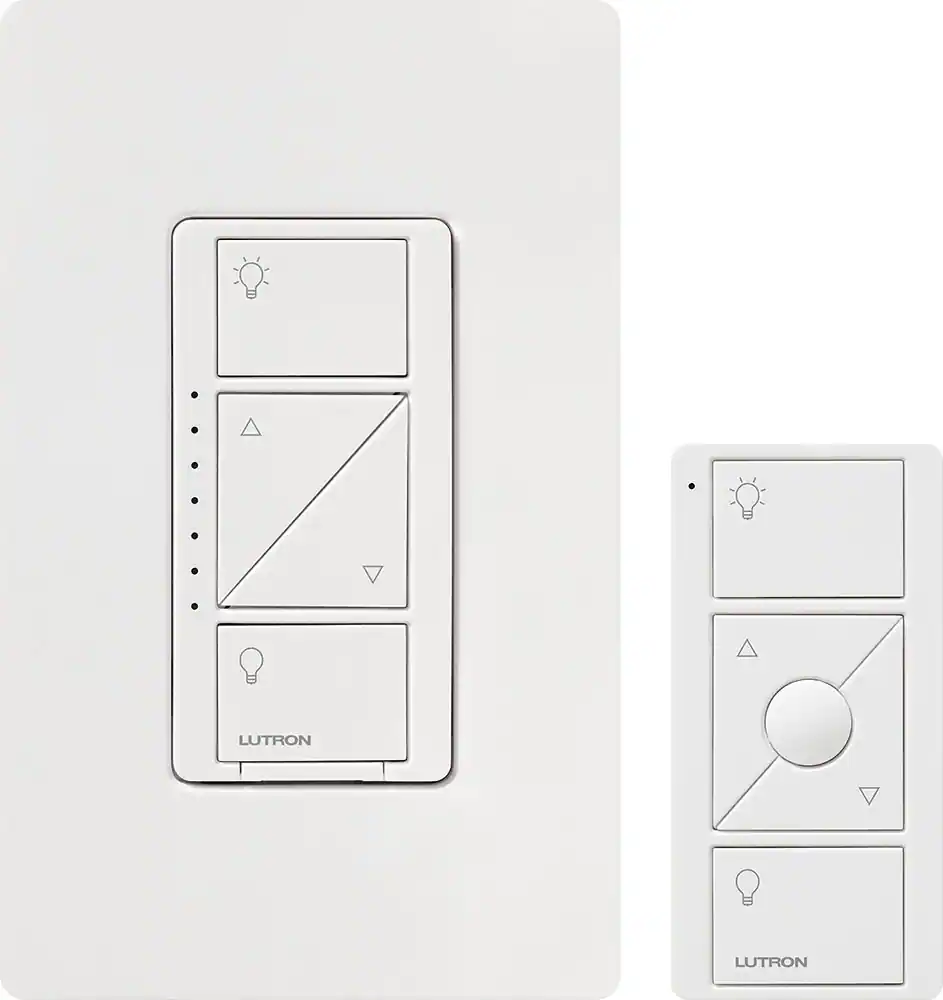Experience the ultimate convenience with the Lutron Caseta Wireless dimmer and Pico remote control. The wireless dimmer gives you the ability to set the right light for any activity whether it’s reading, watching TV, entertaining or having a casual dinner. Control the lights from anywhere in the room by using the Pico remote control either in your hand, on a tabletop pedestal (sold separately) or by mounting the remote directly to the wall. You can even use the Pico remote to control the lights from your car as you arrive home. The remote lets you turn lights ON/OFF as well as brighten or dim them. With the Lutron Smart Bridge and app, you can control your Caseta Wireless dimmers with your Smartphone from anywhere. The dimmer works up to 600-Watt of incandescent or halogen and 150-Watt of dimmable LED or dimmable CFL.