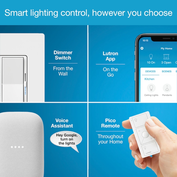 - CONTROL YOUR WAY: Caséta puts the smarts in the switch, so you can control your lights a variety of ways – via the Lutron app, with your voice, at the switch, or with a Pico smart remote
