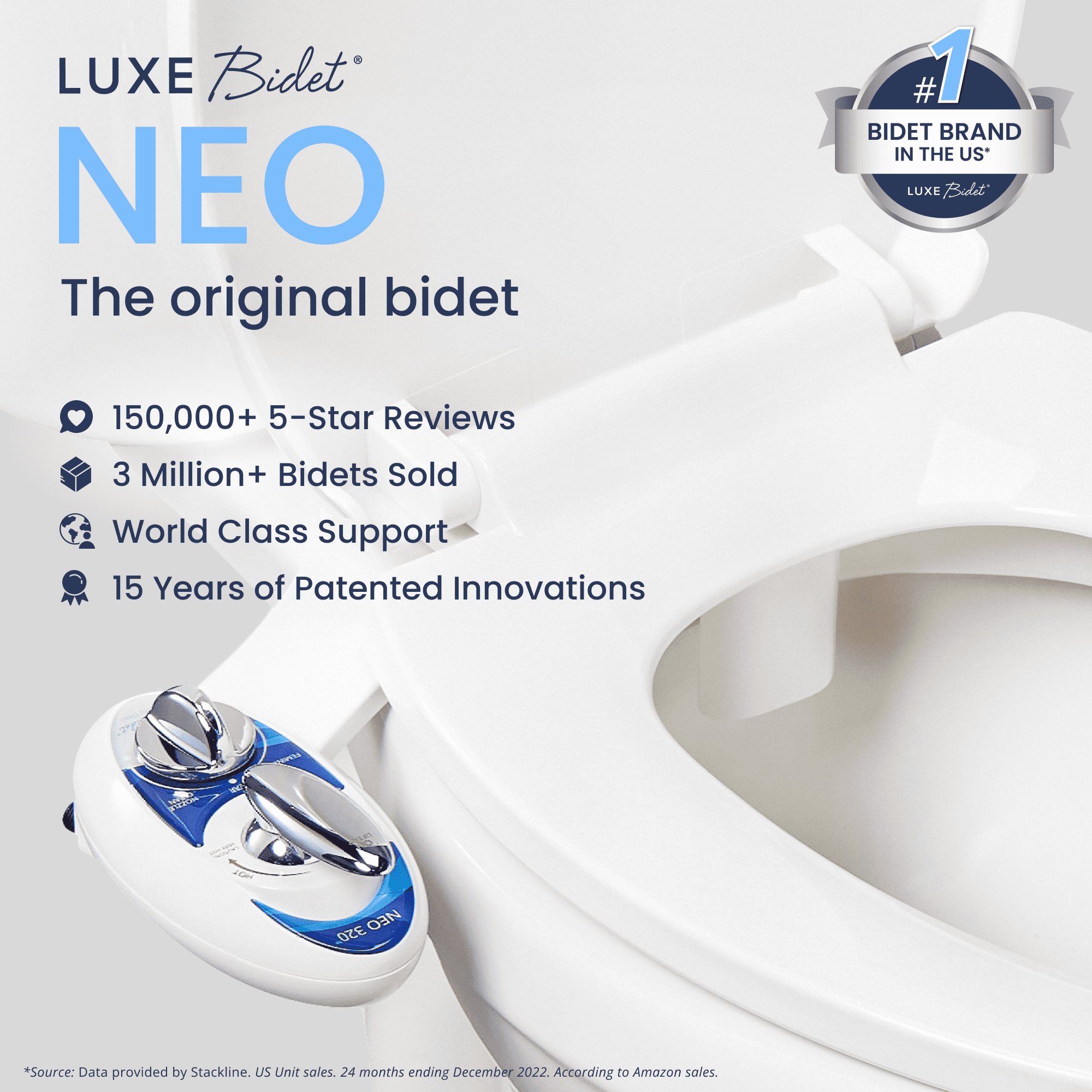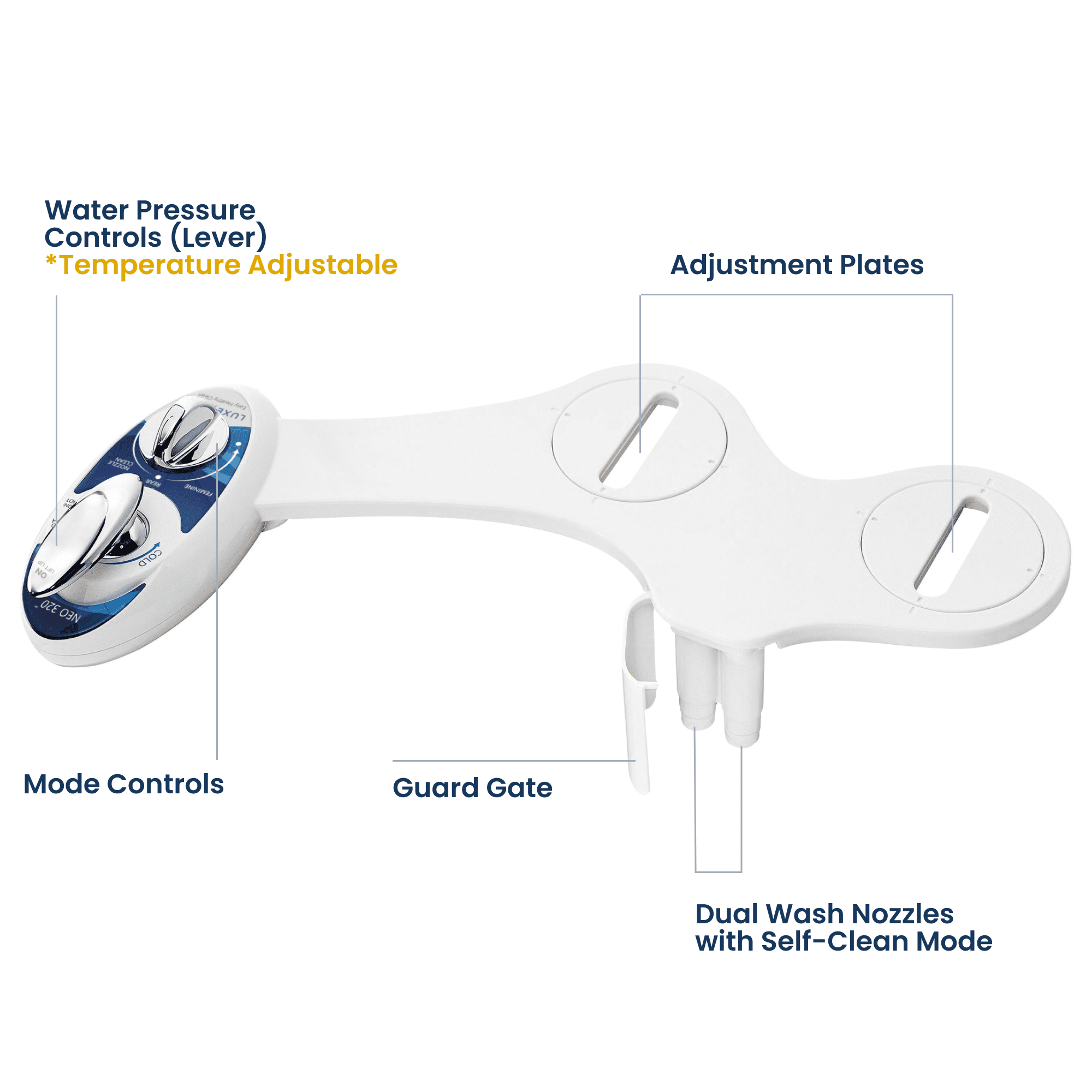 LUXE Bidet NEO 320 – Hot and Cold Water, Self-Cleaning, Dual Nozzle, Non-Electric Bidet Attachment for Toilet Seat, Adjustable Water Pressure, Rear and Feminine Wash, Lever Control (Blue)