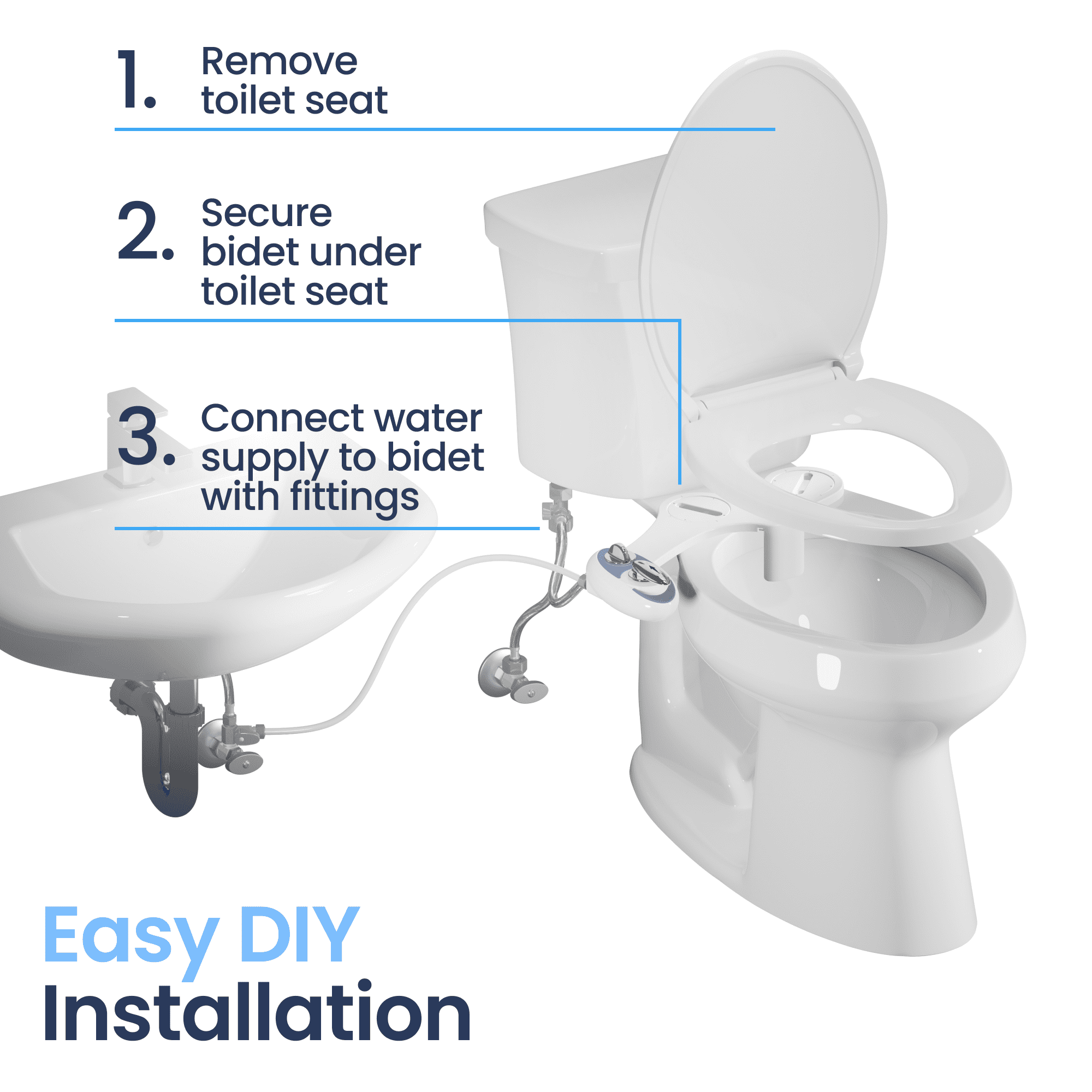 Dual Hygienic Wash Modes: The NEO 320 offers a rear wash with a stronger flow and a feminine wash with a gentler spray, ensuring a thorough and comfortable cleaning experience. Adjustable Warm Water Temperature: Enjoy the luxury of warm water for a soothing and effective cleanse, with the ability to adjust the temperature to your preference, providing comfort in any season. Sanitary Nozzle Design: The nozzles are protected by a hygienic guard gate, retracting after each use to maintain cleanliness until your next wash. Easy Installation and Premium Quality: Upgrading your bathroom has never been simpler, with all the necessary parts and tools included for a quick setup. The NEO 320 is backed by a reliable 18-month warranty and exceptional customer support. Compact and Versatile: With its sleek dimensions of 13.5 x 7 x 3 inches, this attachment bidet effortlessly integrates into any standard two-piece toilet setup, enhancing your bathroom experience.