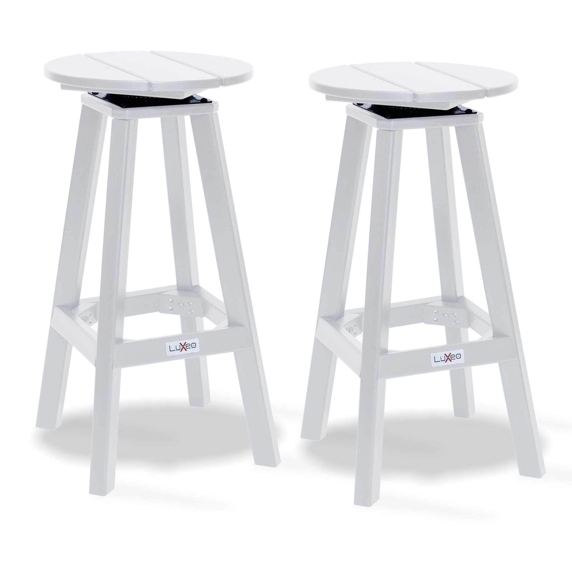 Mason Round Swivel Bar Stool, White (Set of 2) Transform your outdoor living area with our new Mason outdoor swivel round barstools, designed to enhance the beauty of your backyard, patio, or garden. Expertly crafted from high-performance HDPE plastic, these barstools combine durability with style, featuring a comfortable round seat that’s perfect for enjoying morning coffee or unwinding in the garden. With a backless design, integrated footrest, and space-saving versatility, these bar stools are the ultimate choice for compact outdoor spaces. Elevate your outdoor experience today! Two contemporary swivel barstools with modern design touches to capture attention Gently rounded, curved seat for extra comfort Crafted from solid HDPE lumber, this set is built to last without splintering, cracking, or peeling Say goodbye to painting or staining – our set is designed to resist stains, environmental stresses ensuring long-lasting beauty Perfect addition to add to an outdoor kitchen, bar serving counter or a bar counter table Backless swivel stool design, perfect for effortlessly tucking away when not in use Stainless steel hardware Easy cleaning with just soap, water, and a soft-bristle brush Mason Bar Stool Size: 15x15x29″ Stool Weight Capacity: 300 lbs. – Shape: Round – Size: 2 – Color Family: White – Design/Style: Contemporary – Item Material: High-density polyethylene (HDPE) – Outdoor (Y/N): Yes – Number of Pieces: 2 – Vendor Color: White – Item Weight: 19 – Item Depth: 15 – Item Height: 29 – Item Width: 15 – Barstool Dimensions: 15W x 15D x 29H – Barstool Weight: 19