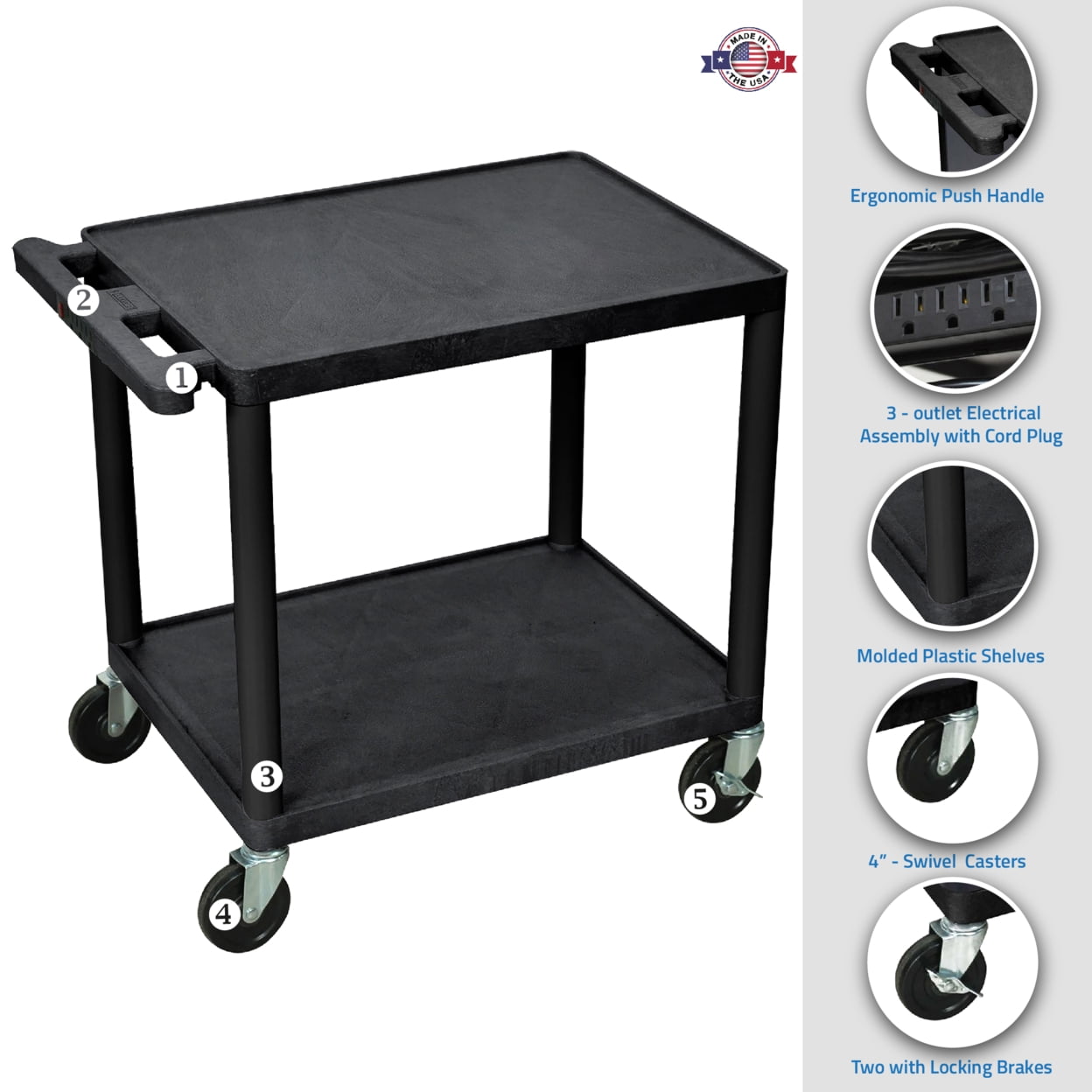 Luxor 18″ x 24″ x 26″ Tuffy Two Shelf Flat Utility Cart With Electrical – Black