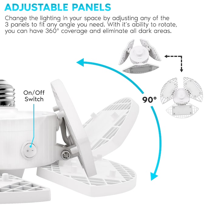 • SUPER BRIGHT – You’ll have 8000 lumens of ultra bright light that will provide quality lighting to your entire space with the 3 adjustable panels – Installation requires no tools with the E26 standard base that fit normal household sockets