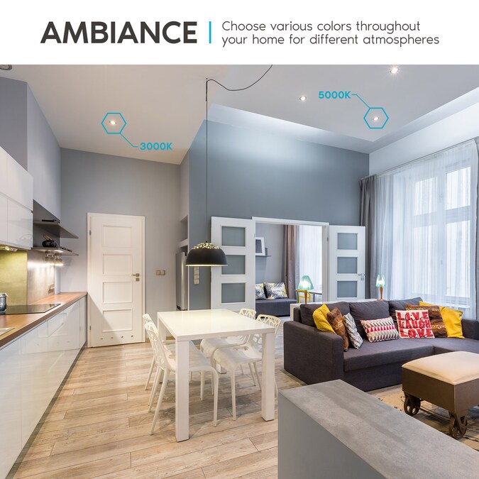 - 5 COLOR OPTIONS – Each LED downlight has a simple to use switch that can change your lights to 2700K warm white, 3000K soft white, 3500K natural white, 4000K cool white, or 5000K bright white Adjustable through 5 colors until you find the perfect light