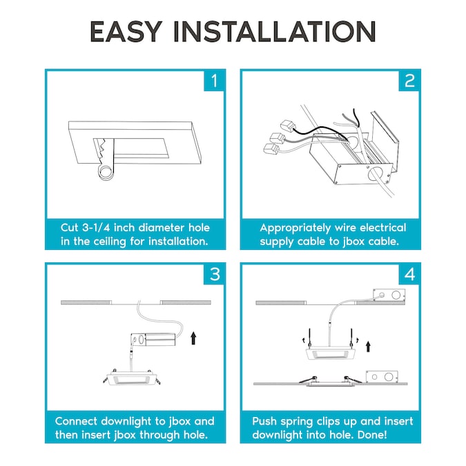 - 5 COLOR OPTIONS – Each square LED downlight has a simple to use switch connected that can change your lights to 2700K warm white, 3000K soft white, 3500K natural white, 4000K cool white, or 5000K bright white