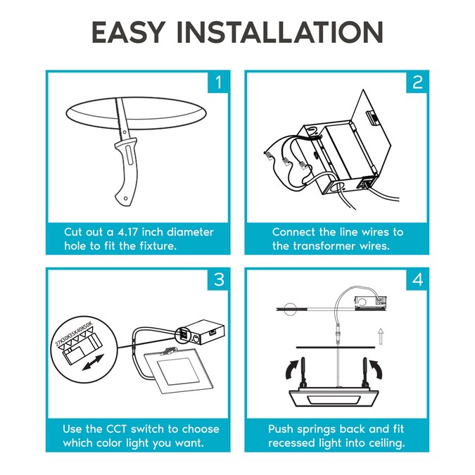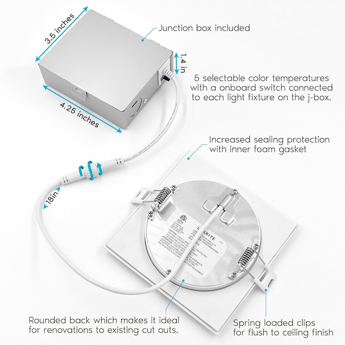 - 5 COLOR OPTIONS – Each square 4 inch dimmable LED downlight has a simple to use switch connected that can change your lights to 2700K warm white, 3000K soft white, 3500K natural white, 4000K cool white, or 5000K bright white