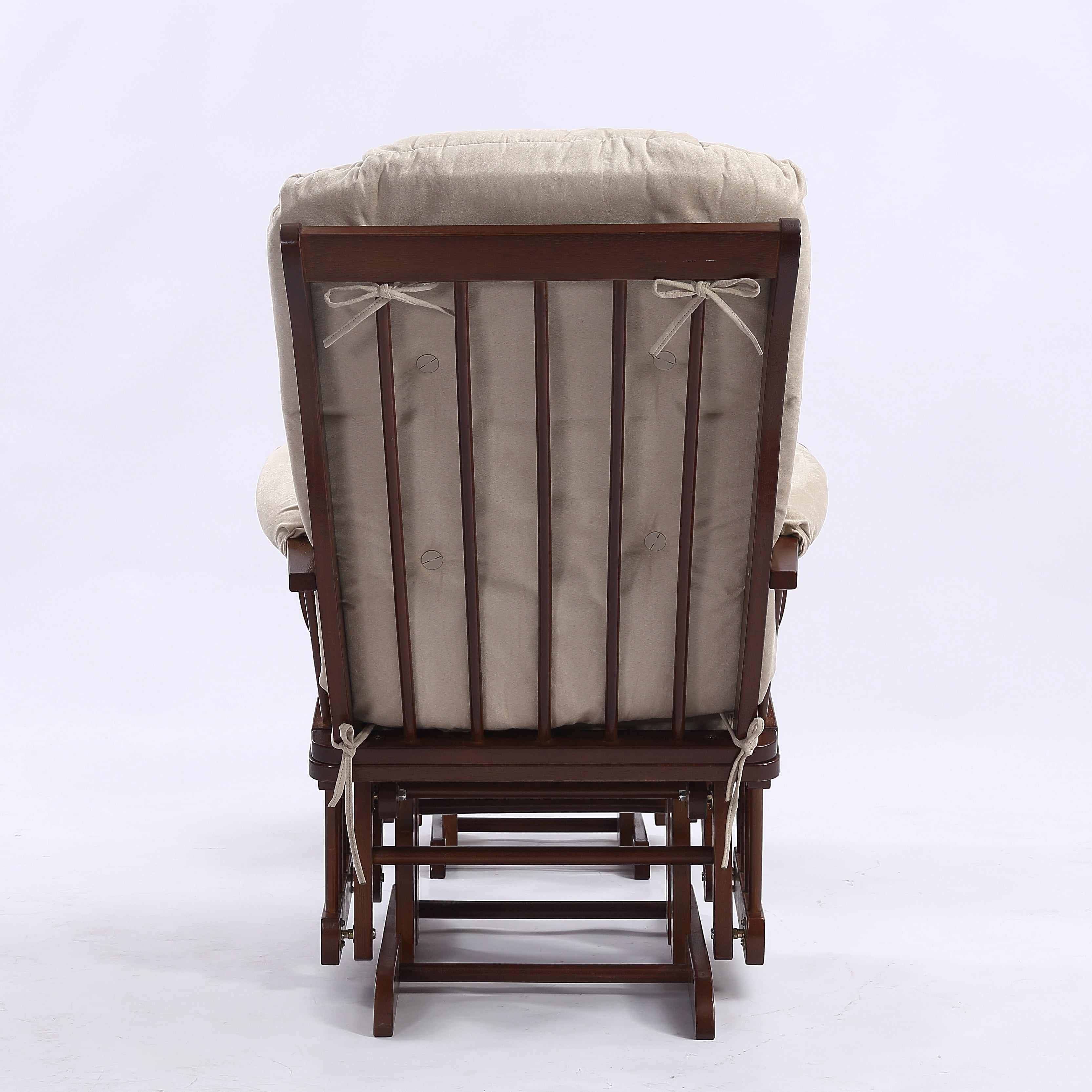 Nestle into this glider’s cushion and kick your feet up on the padded ottoman to relax and enjoy your favorite TV shows. Constructed of solid plantation wood, with generous padding for added comfort, this glider is available in multiple cushions and base colors so it will match your style and blend seamlessly with the rest of your rooms decor.