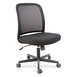 Task chair with no arms features a breathable mesh back and thickly cushioned seat with fabric upholstery for a comfortable seating experience. Without arms, this chair offers more flexibility and freedom. Customize the chair for the ideal position with comfort functions including pneumatic seat-height adjustment, tilt lock, adjustable tilt tension and 360-degree swivel. Nylon base is equipped with dual-wheel casters for easy chair movement. Weight capacity is 250 lb. LYS Mesh Back Armless Task Chair, Black