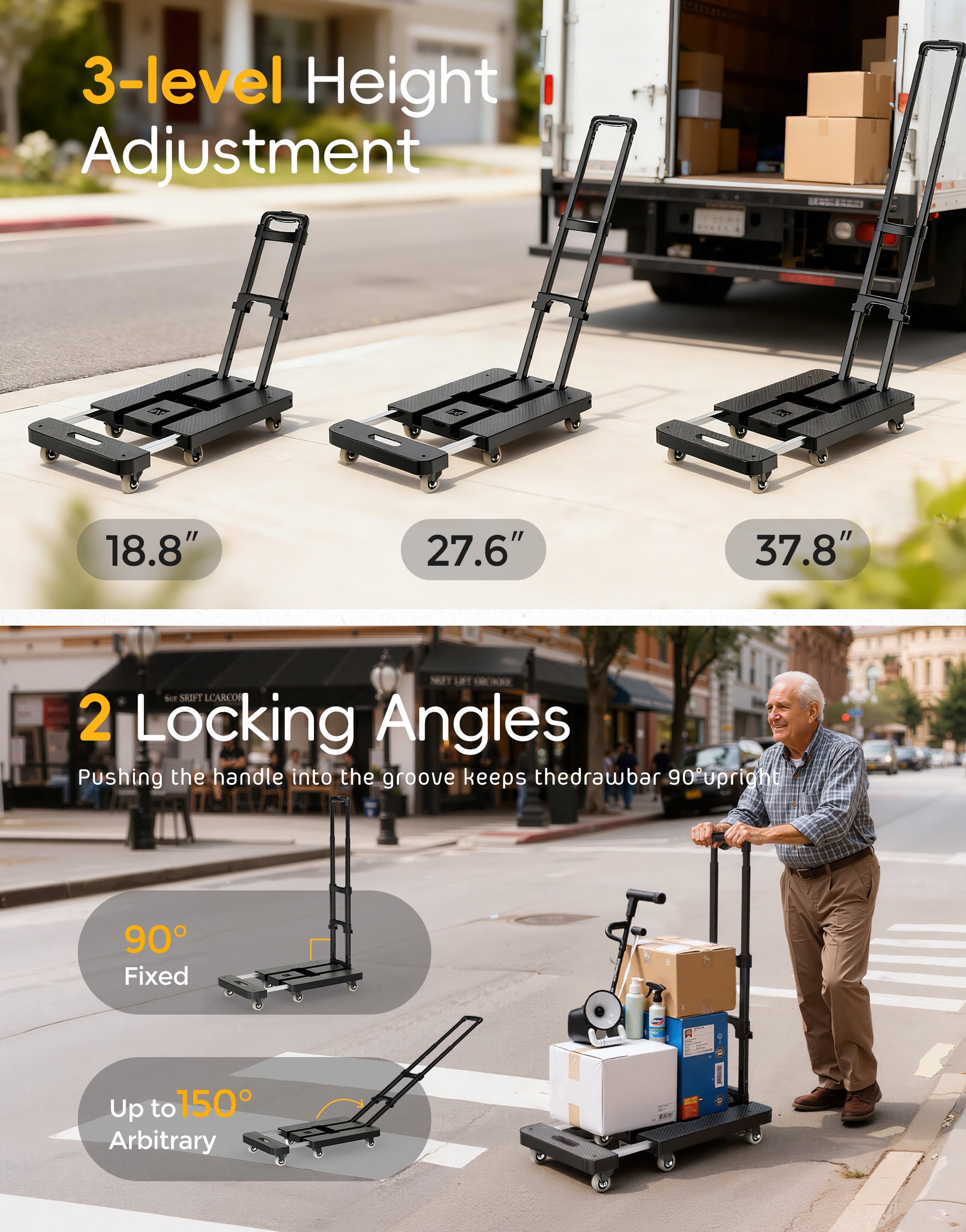 【Folding Hand Truck Easy Storage】Can Be Folded Up Easily in Few Seconds. With The Compact Size And Light Weight(7.27 lbs), You Can Put into The Backpack after Folded And Won’t Feel Heavy. 【Heavy Duty And Durable】 The Drawbar is Made of Thickened Steel Material, Which is More Durable Than Other Hand Trucks. Can Hold Up to 290 lbs Capacity And Not Easy to Shake When Pulling. To ensure the stability. 【High-Quality Tank Wheels】 Upgraded Tank Wheels are 3 Times More Durable Than Other Rubber Wheels in The Market, Which are More Wear-resistant, Noiseless And Long Using Life. 【Larger Capacity Backpack】 A Very Useful Match With The Cart. No Need to Buy Extra One. Perfect for Carrying Large-size Boxes, Heavy Stuff, Packages, Goods also, you can put your hand truck in this backpack, saving you energy and time. 【Large Base Plate】 Can Hold Large-size Stuff and Not Easy to Shake When Pulling. Meanwhile, The Base Plate is Made of Thickened High Quality PP Plastic, Which Makes The Cart More Durable. We have strict quality control system, our products are put into the market after rigorous testing.