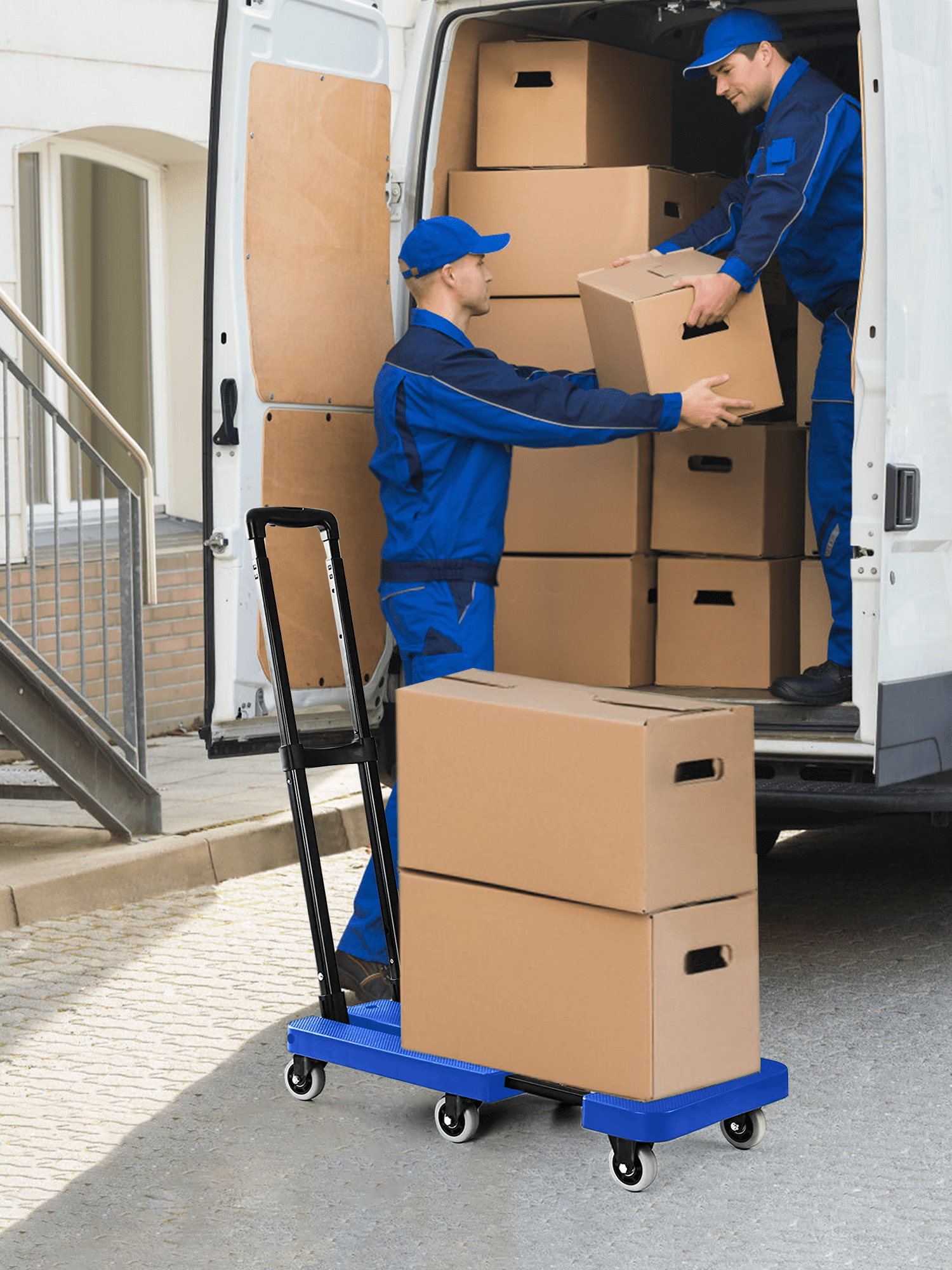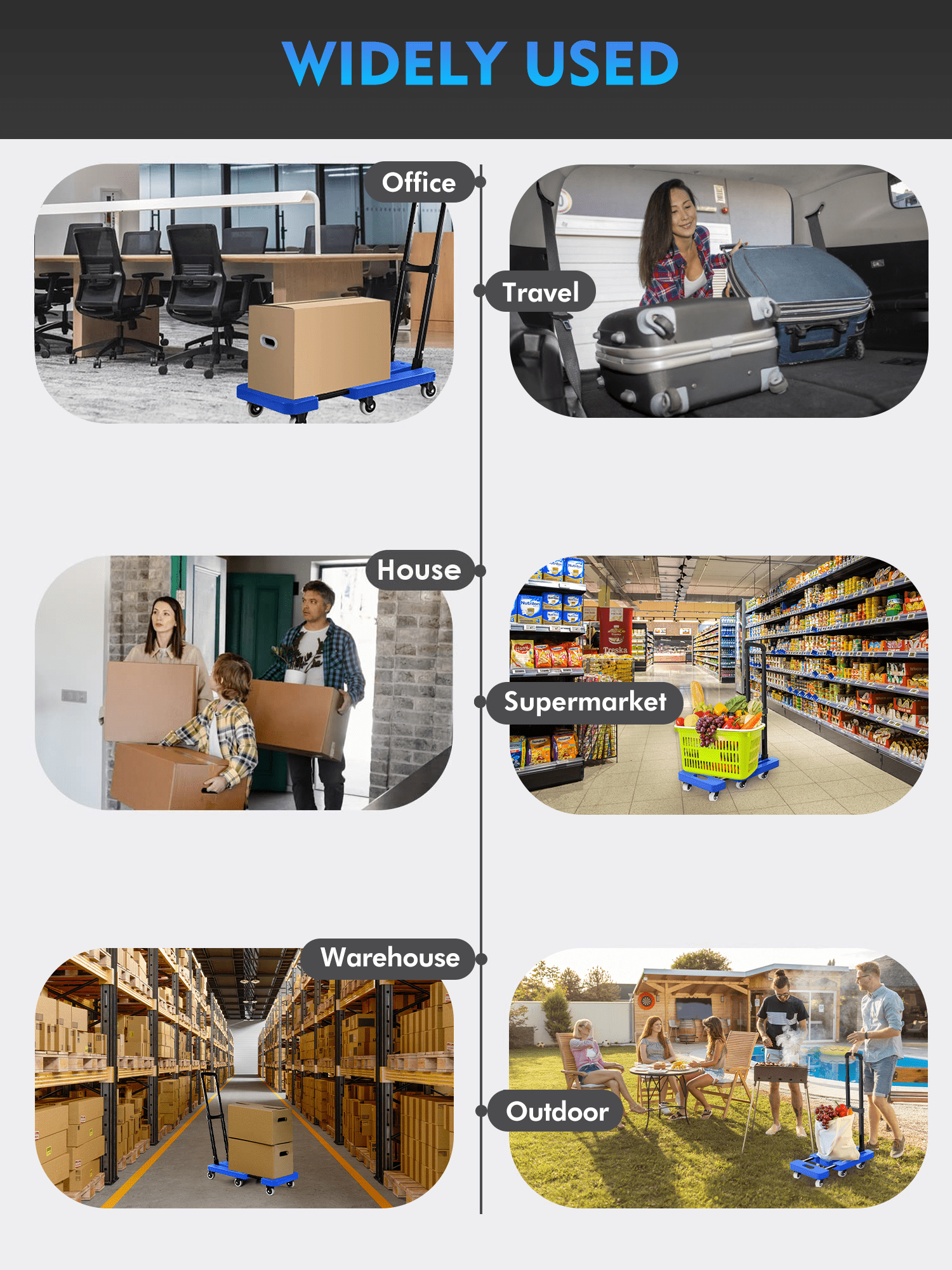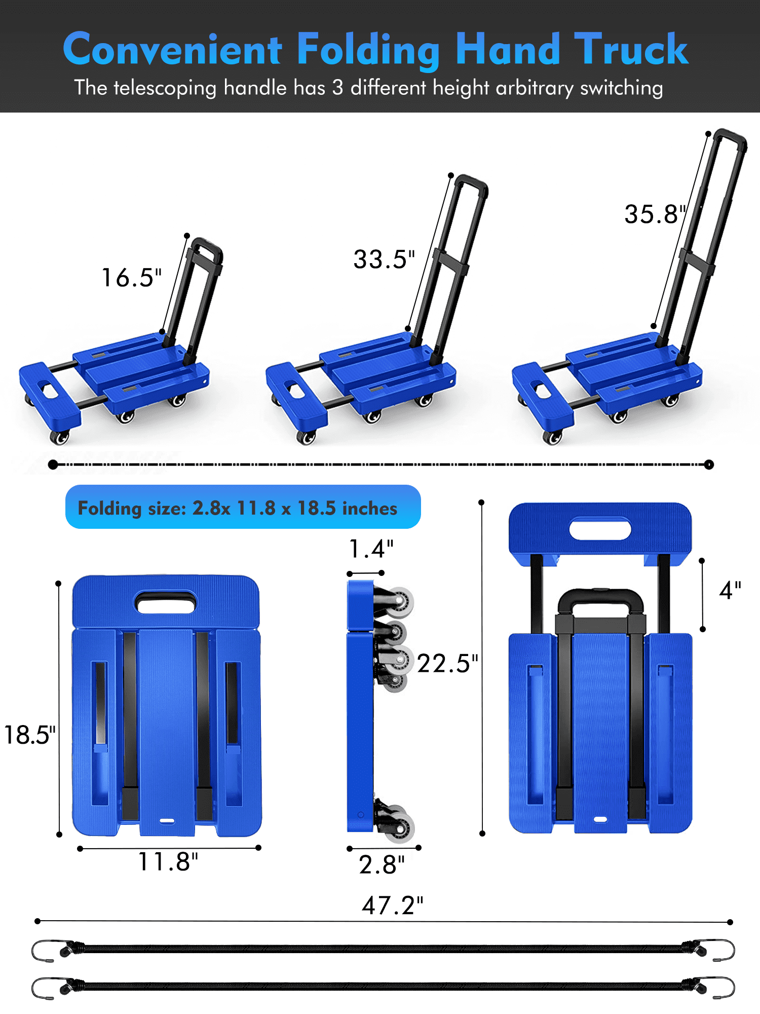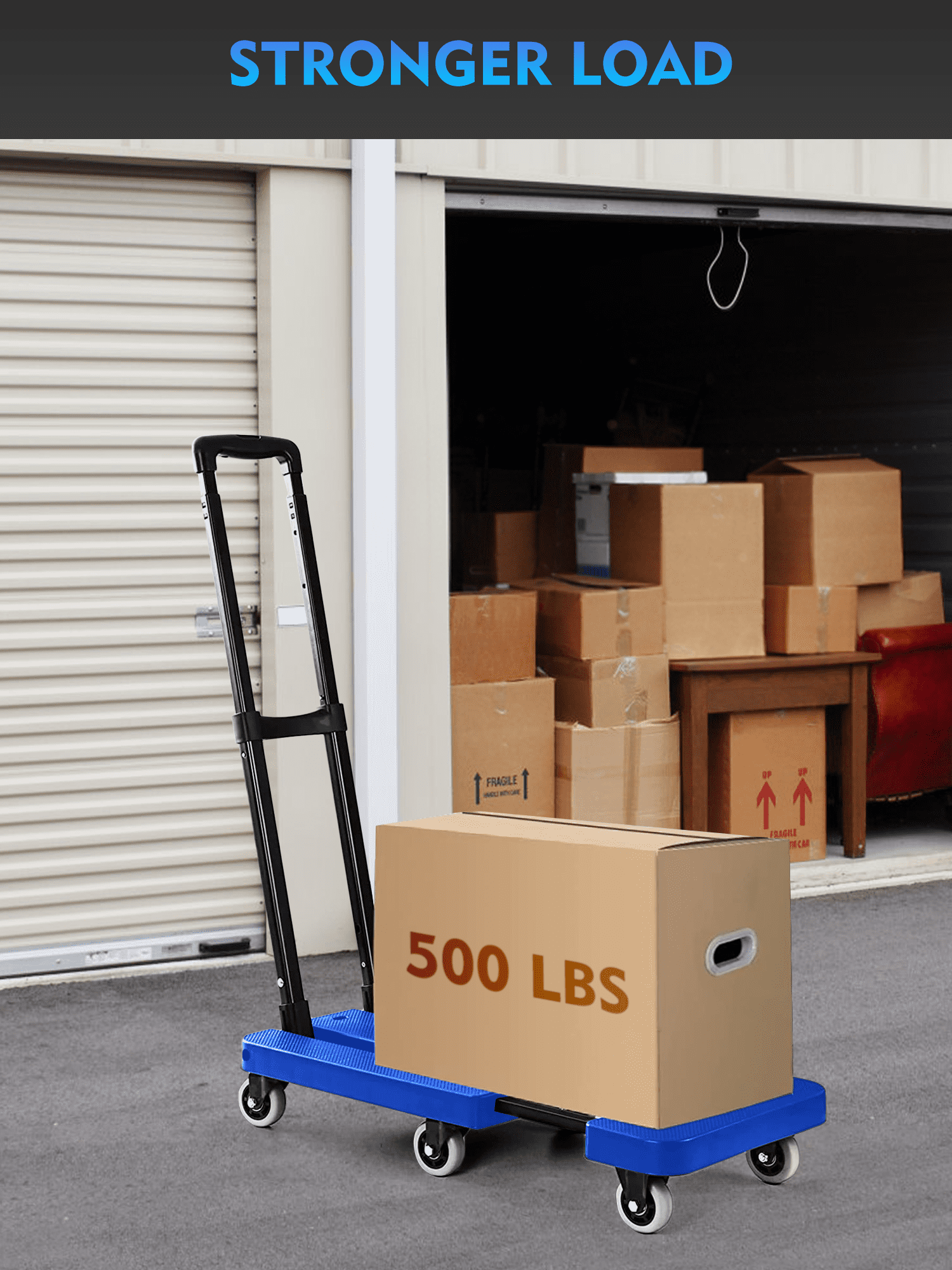 M BUDER Folding Hand Truck, 500 lbs Heavy Duty Dolly Cart, Utility Platform Cart with 6 Wheels for Travel, House, Office, Shopping, Moving Use – Blue High Quality PP Plastic Folded Size 11.8 x 17.7”