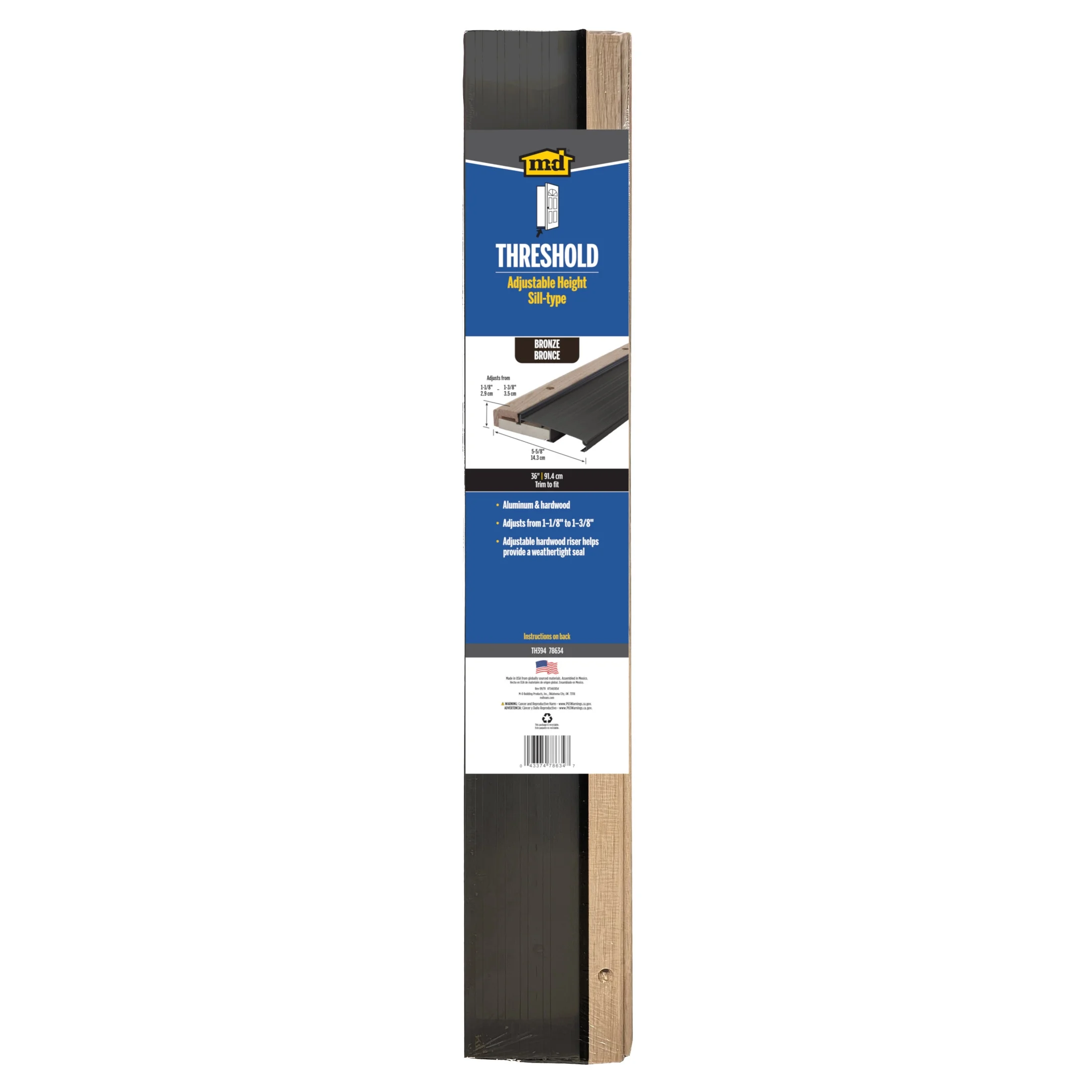 M-D Building Products 78634 5-5/8 in. x 1-1/8 in. x 36 in. Bronze Adjustable Aluminum & Hardwood Threshold