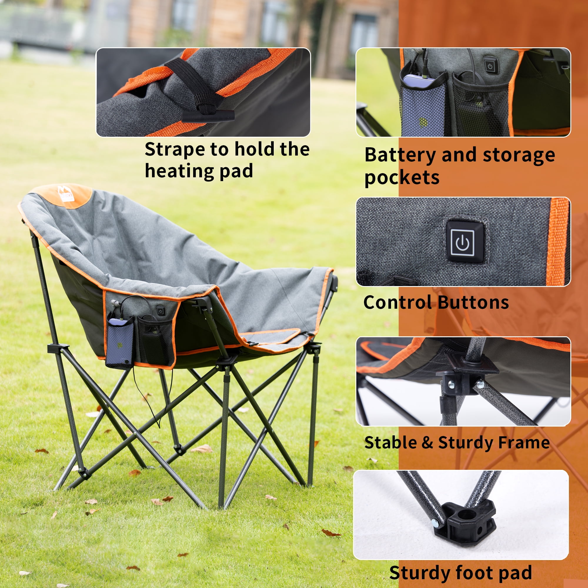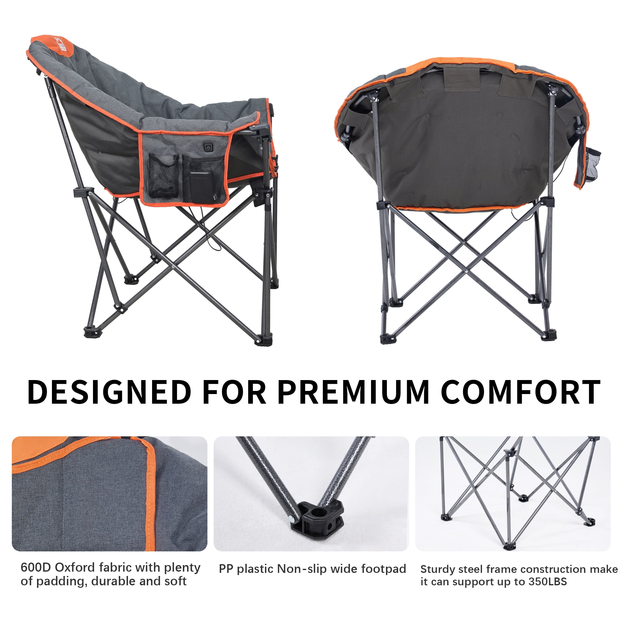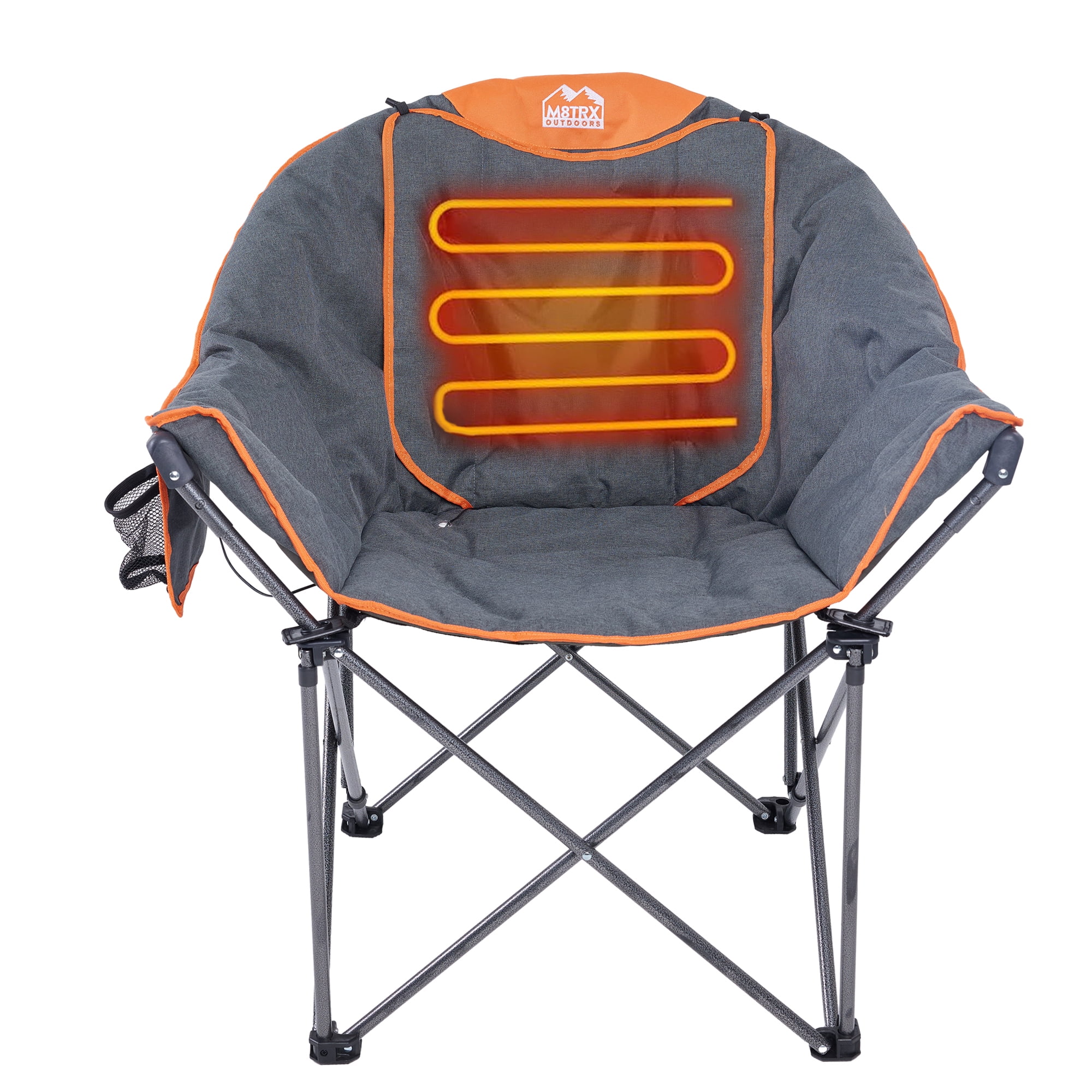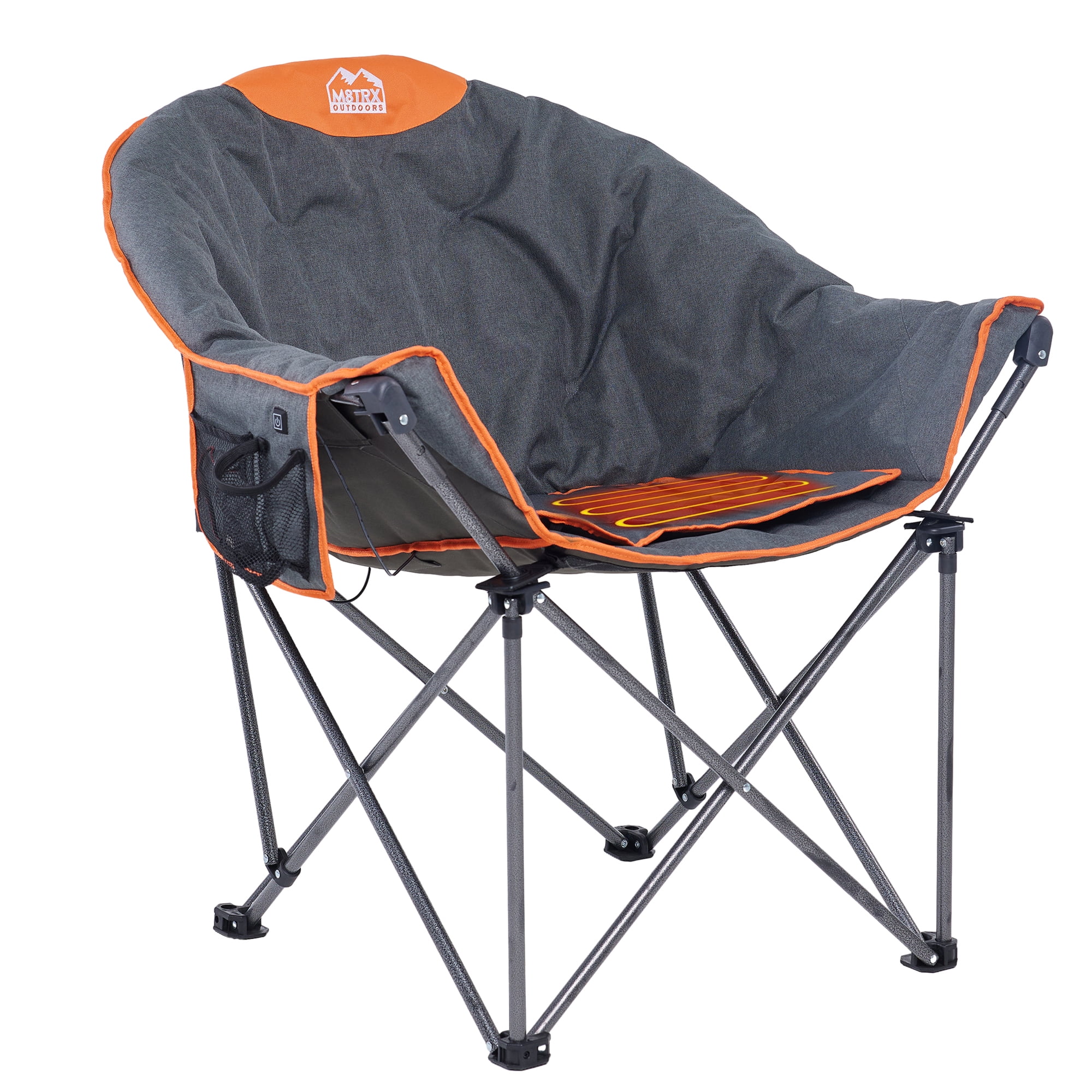 M8TRX Heated Camping Chair, Extra-Wide Outdoor Folding Chair, Supports 350 lbs., USB Charging Port, Heated