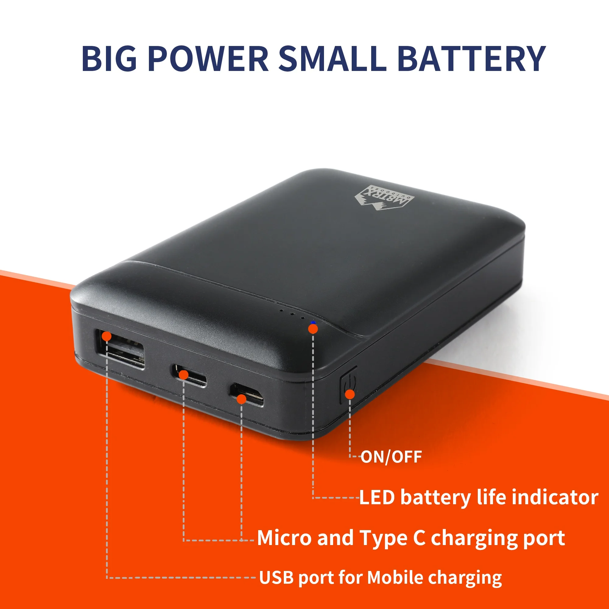 Extra-wide back and seat Dims W33.5″ x D29″ x H36.6″ Weight capacity of 350 LBS 600D Oxford fabric Non-slip wide footpads and sturdy steel frame Compact folding design for travel and space saving storage Battery and storage pockets Control buttons Heating Pad with 5,000mAH Power Bank 5V Li-polymer battery comes equipped with on/off button, LED battery life indicator, Micro and Type C charging port and a USB port for mobile charging