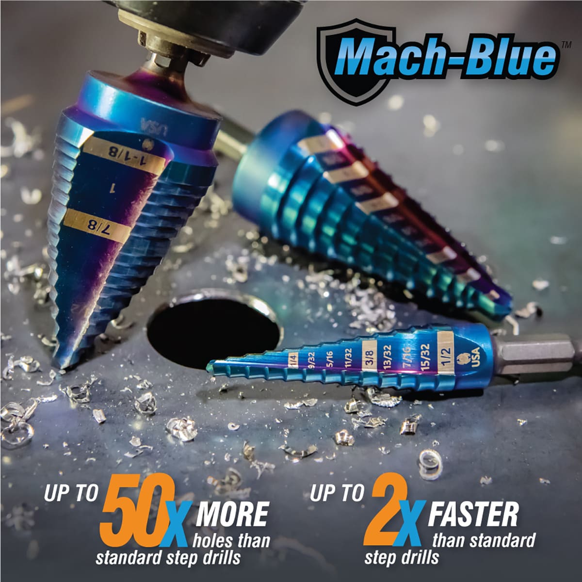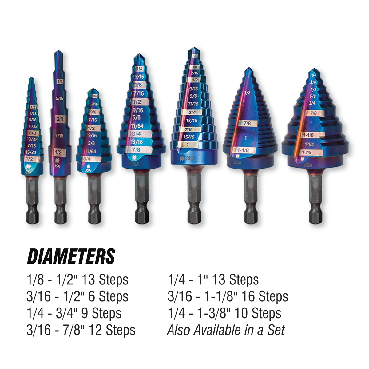 The Spyder Stinger Mach-Blue armor plated high speed steel (HSS) step bits are high performance metal drilling bits that provide exceptional drill bit quality and durability, drilling performance, and value. The Mach-Blue Armor Plating combined with the advanced M-series alloy tool steel construction and proprietary heat treatment make these bits truly revolutionary – they retain sharper cutting edges for longer, have reduced heat build-up and cutting friction, and increased durability, rigidity, and breakage resistance. These incredibly durable bits are the pro’s choice for precision drilling, extended bit life, and value. Ideal for electrical work and other applications in sheet metals, including enlarging existing holes.