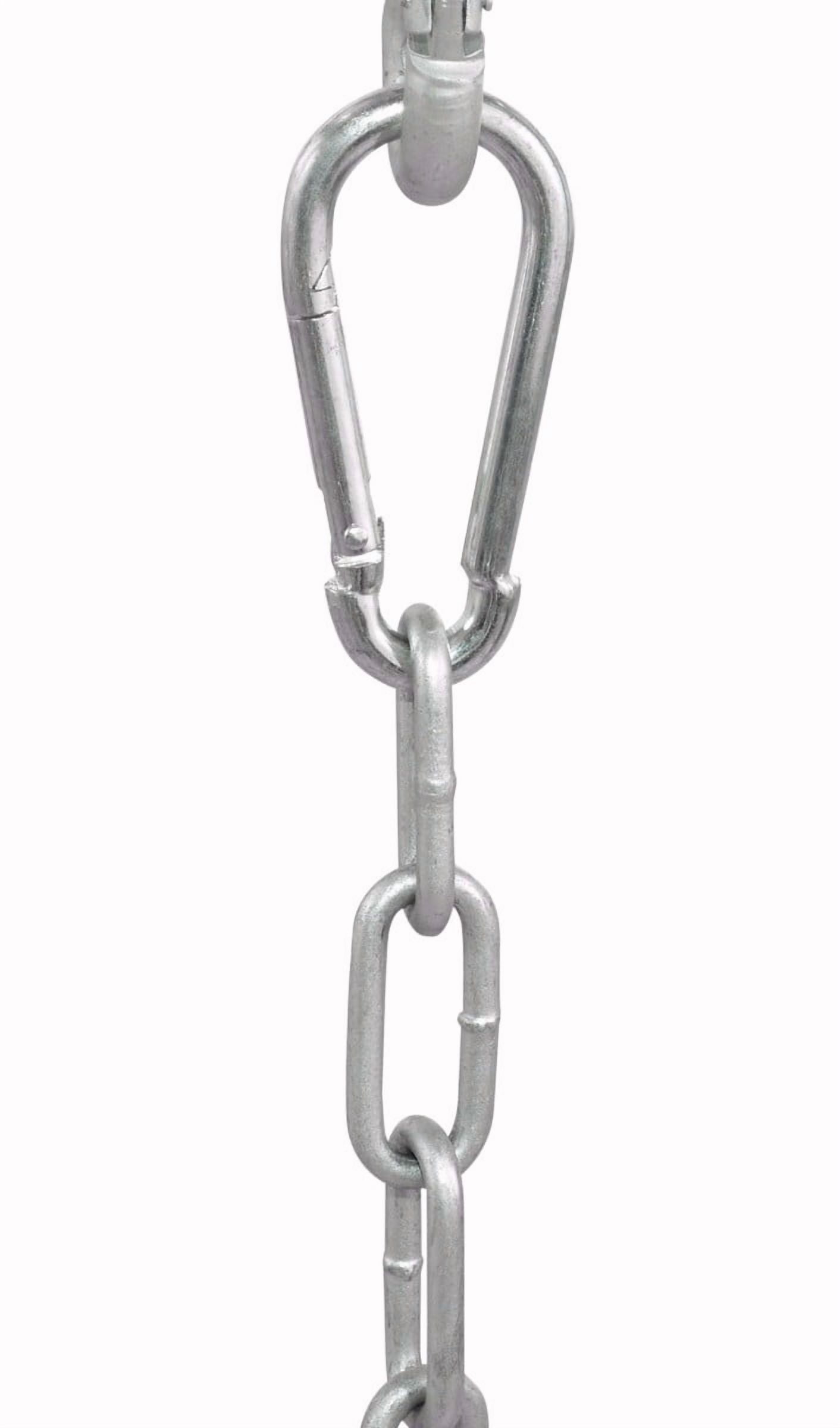 The 27” flexible seat is safe and comfortable for the rider, making it a swing your child will be reluctant to leave. The seat is constructed with highly durable copolymer plastic, with dacromet steel triangle supports designed to be rust-free. The ultimate in heavy-duty, all-weather, rust-proof design! Features: 61” adjustable dacromet chains, designed to be corrosion resistant; 32” covered with PVC coating for pinch-free fun and a more comfortable, secure ride. Use it in your backyard, hang it on trees, attach it to your deck or ceiling or use it on your patio. Kids & adults will all enjoy this Swingan belt swing immensely, providing constant fun and entertainment.