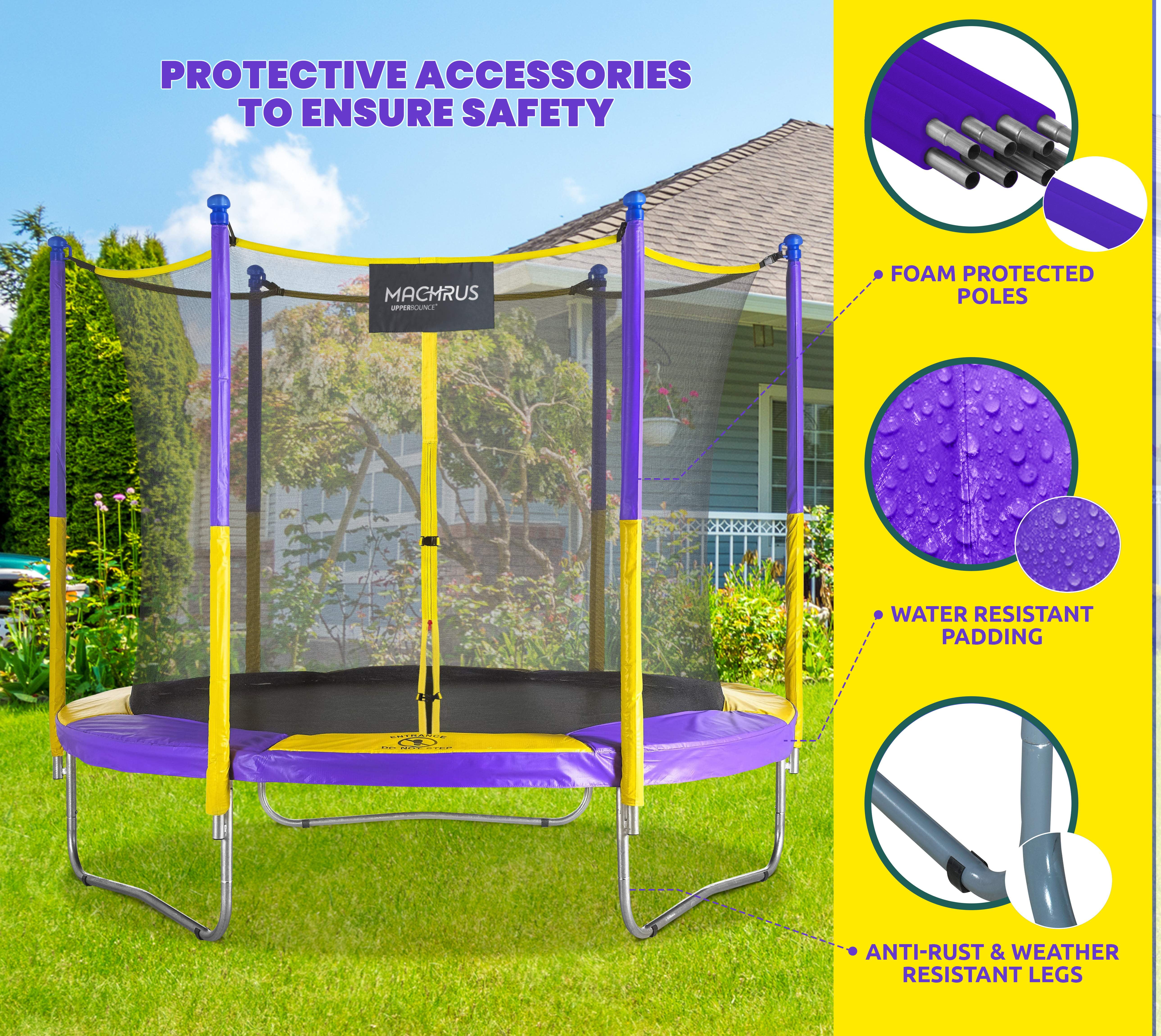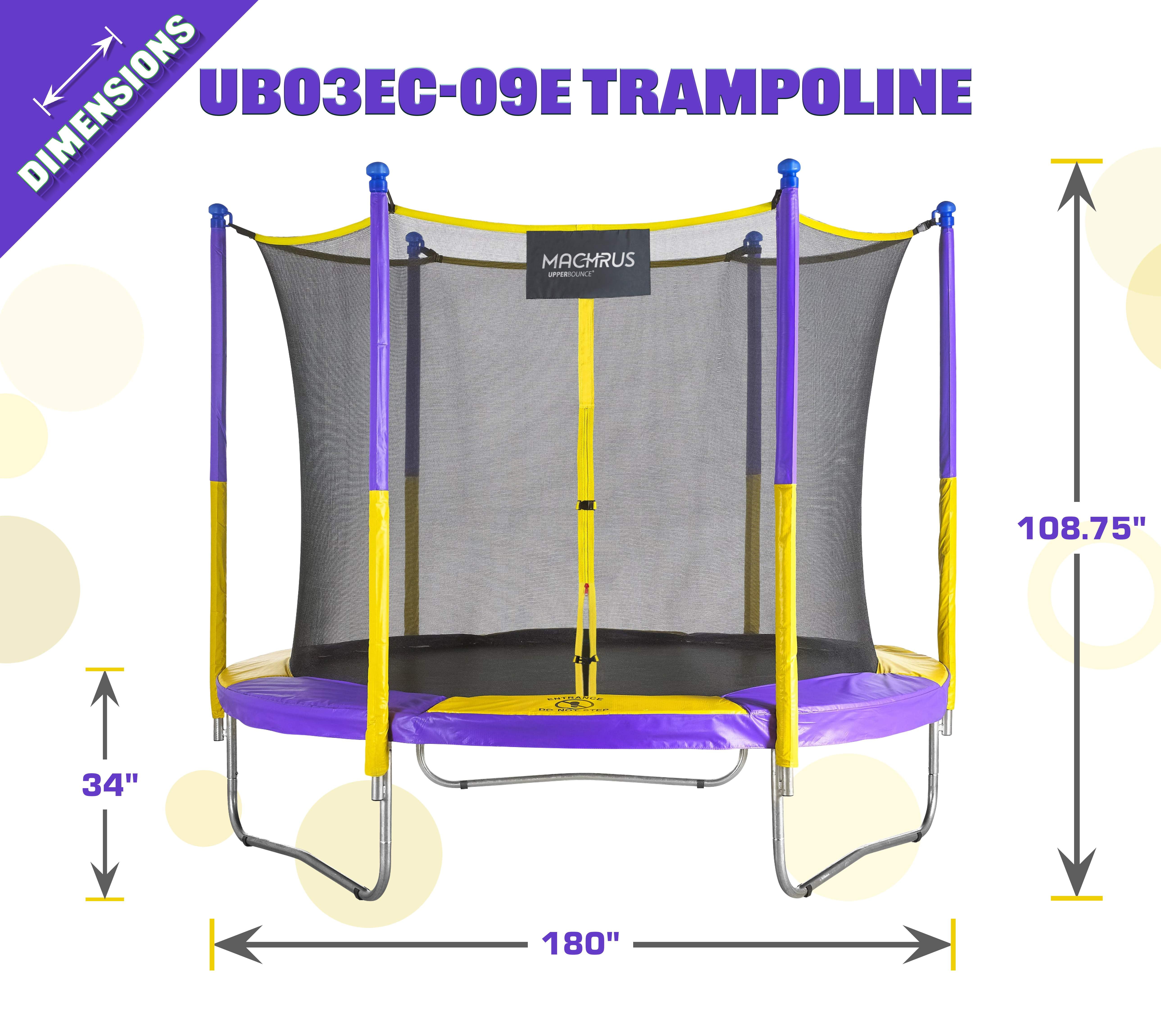 Machrus Upper Bounce 9 FT Round Trampoline Set with Safety Enclosure System -Backyard Trampoline – Outdoor Trampoline for Kids – Adults