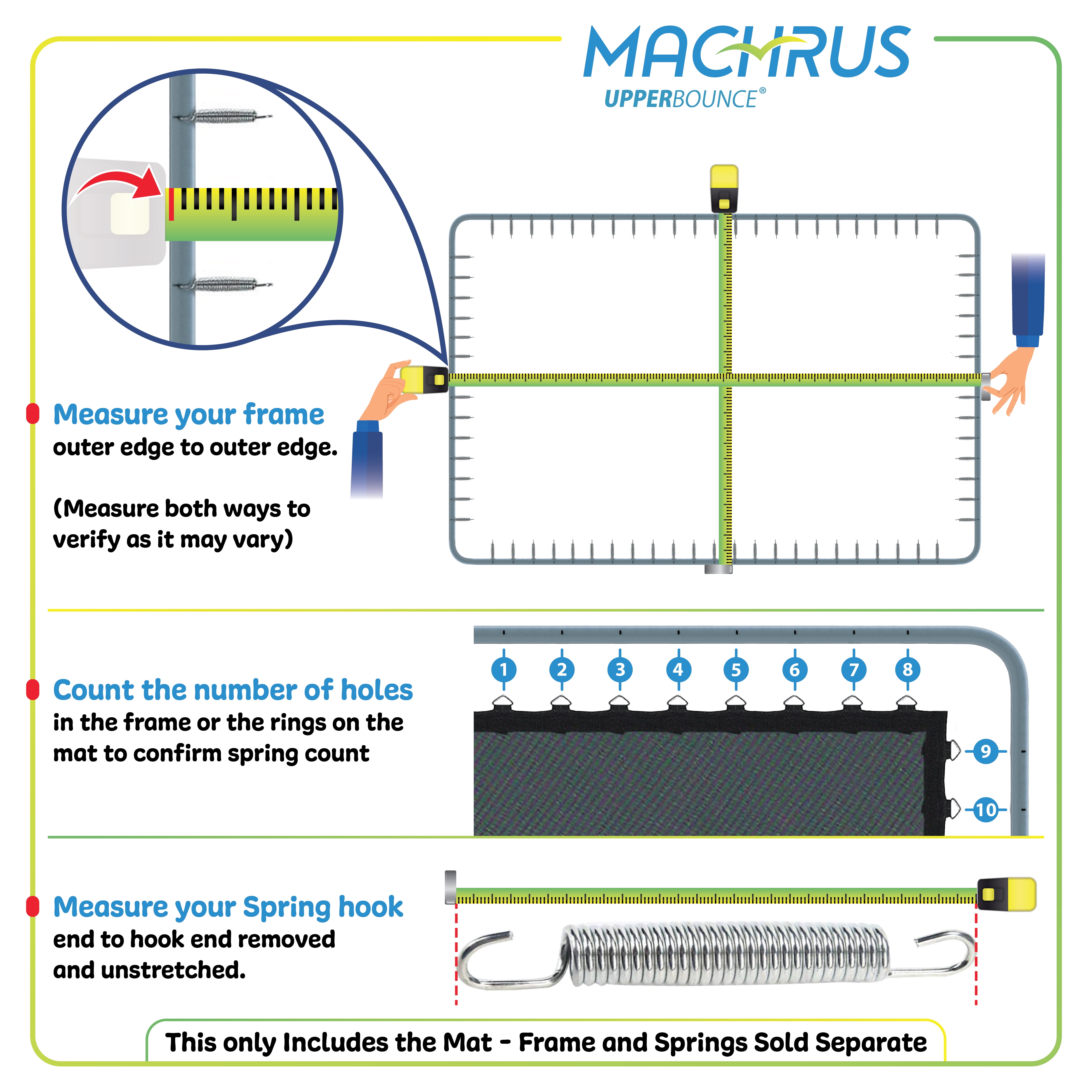 Durability & Longevity: This UV-resistant, water and fade-resistant trampoline mat ensures durability, making it perfect for outdoor conditions and long-lasting use, providing ultimate trampoline parts and supplies Perfect Fit: Fits 8×14 FT rectangular trampoline frames with 86 V-Rings, using 7″ springs. Ideal trampoline parts replacement, designed for easy setup and maintenance Superior Jumping Experience: Crafted from high-quality PP mesh material with 8-row stitching, this replacement trampoline mat ensures safety and performance, enhancing the jumping experience Universal Compatibility: Our trampoline mat replacement is compatible with various trampoline brands, offering a reliable and efficient solution for your trampoline replacement mat needs. Unlimited Fun: Whether it’s for fitness, gymnastics, or casual play, this trampoline replacement mat enhances trampoline mats performance, making it a must-have trampoline accessory for endless entertainment.