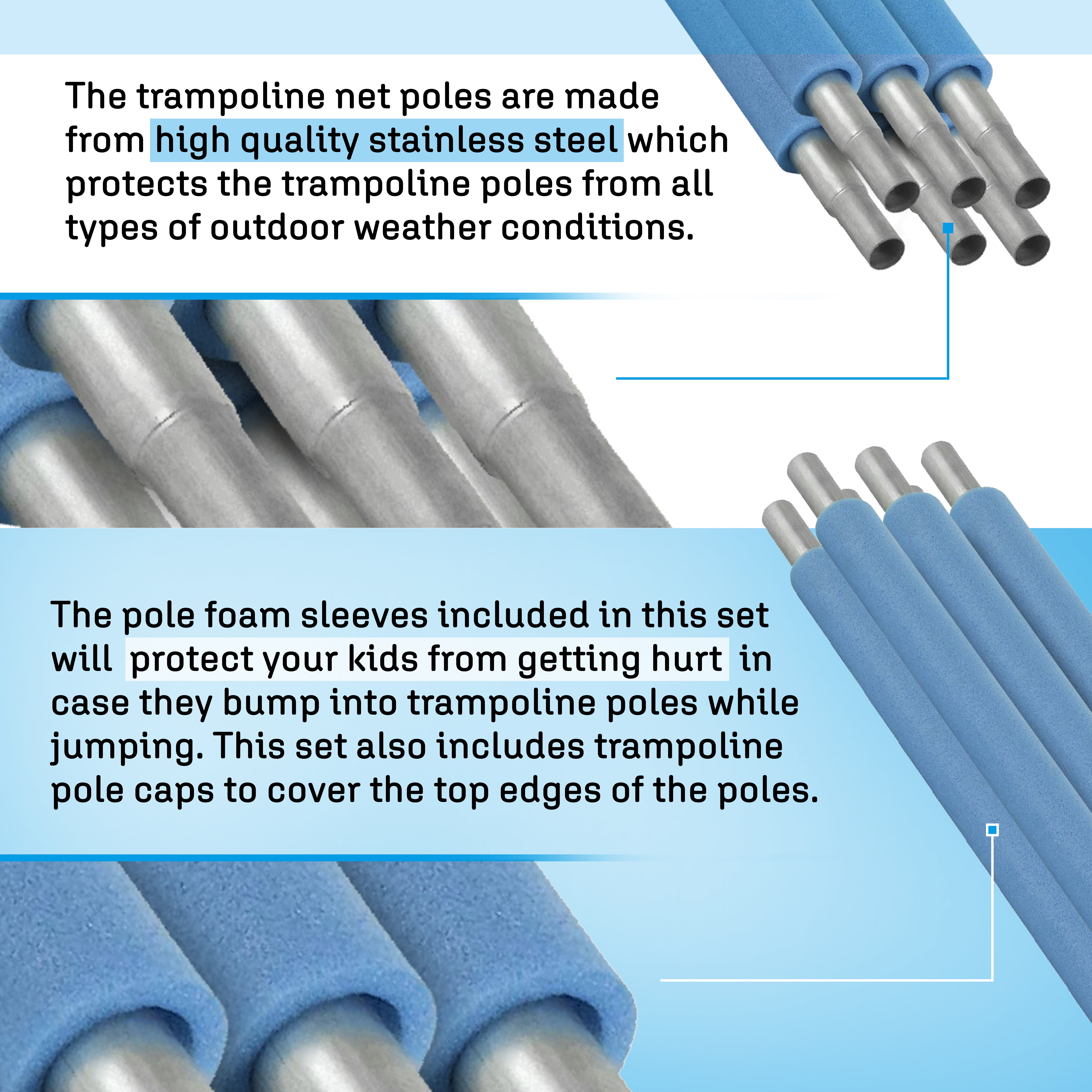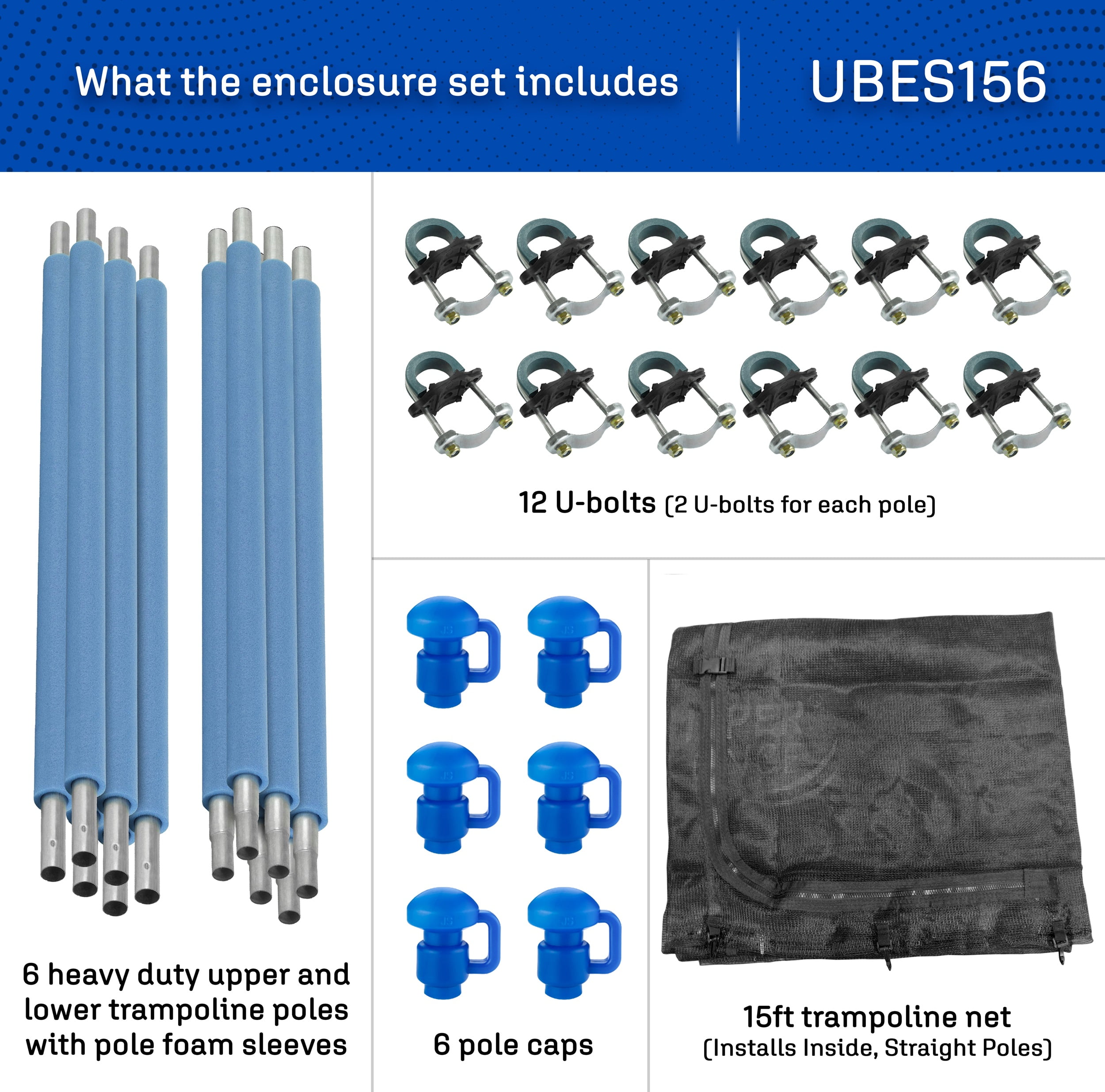 Machrus Upper Bounce Trampoline Safety Enclosure Set including Trampoline Net, 6 Trampoline Poles, Caps and Trampoline Pole Foam Sleeves – Fits 15ft Round Trampoline Frame – Installs Inside the Frame