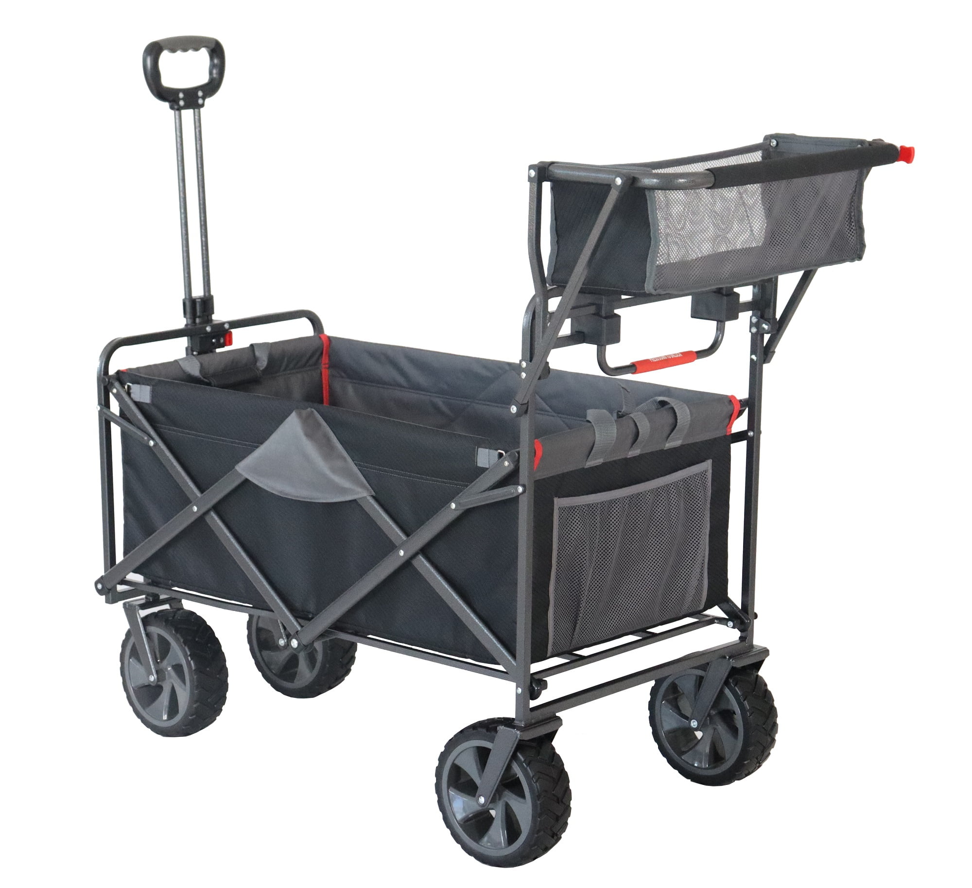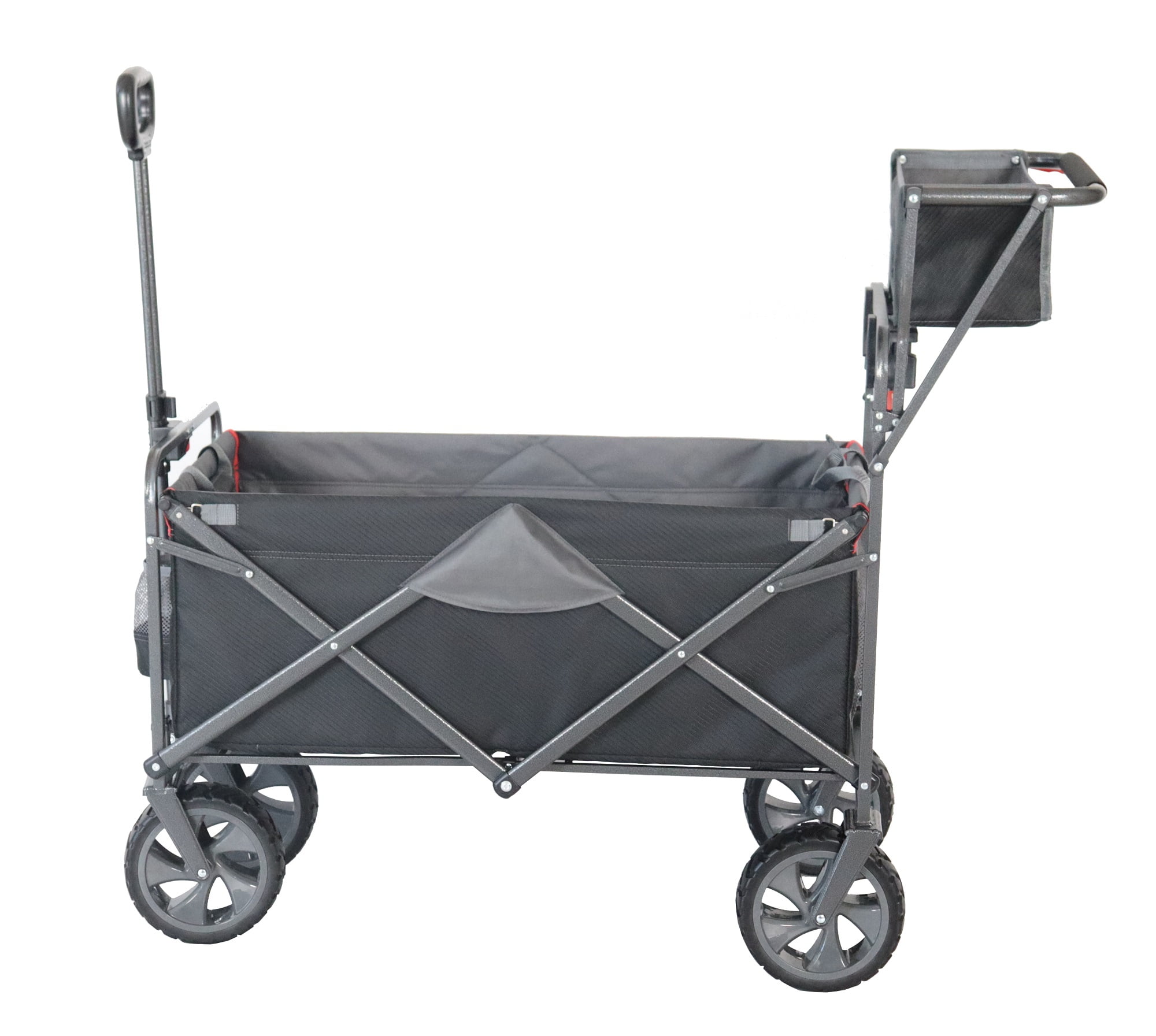 Introducing the Macsports Push-Pull Wagon – Whether you’re gardening, transporting sports equipment, camping, or shopping, this versatile utility wagon has you covered. Crafted with a heavy-duty steel frame and rugged polyester fabric, the Macsports Push-Pull Wagon is built to last. Its sleek black and gray design adds a touch of sophistication to its sturdy construction. Equipped with both a pull handle and an additional push-style handle, you have the flexibility to effortlessly switch between pulling or pushing, adapting to any situation with ease. No more struggling with heavy loads – the Macsports wagon offers ergonomic comfort and convenience for every task. With two attached cup holders and a fabric basket on the push-handle, you can keep your essentials close at hand while you’re on the move. Whether it’s a refreshing drink or small items you need quick access to, the Macsports wagon has thoughtful features to enhance your experience. When it’s time to pack up, the Macsports Push-Pull Wagon folds down effortlessly to a compact size, making storage a breeze in your car trunk or at home. Say goodbye to bulky carts that take up valuable space and wagons that require several steps of assembly in order to be on the move. The Macsports wagon is designed for maximum convenience. No assembly required and no separate/loose pieces to attach before and after use. From gardening to grocery shopping, camping trips to sporting events, the Macsports Push-Pull Wagon is your trusted companion for every adventure. Experience the perfect blend of durability, versatility, and convenience with Macsports – because life’s journeys are meant to be enjoyed, not endured.