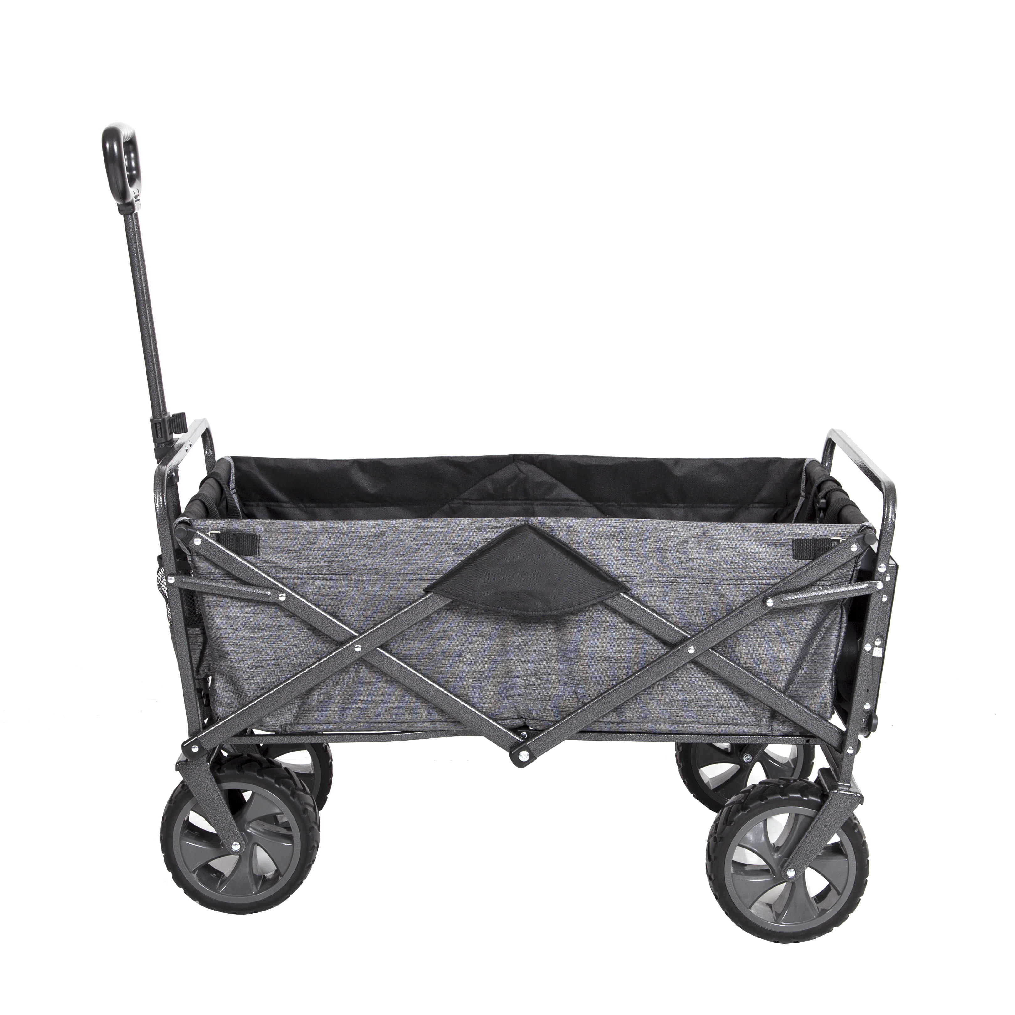 New Macsports Wagon with Tailgate Zippered tailgate for carrying longer items like chairs or umbrellas Capable of carrying up to 300 lbs of equipment or supplies Opens and folds in seconds with no assembly required Sturdy steel frame Durable polyester fabric