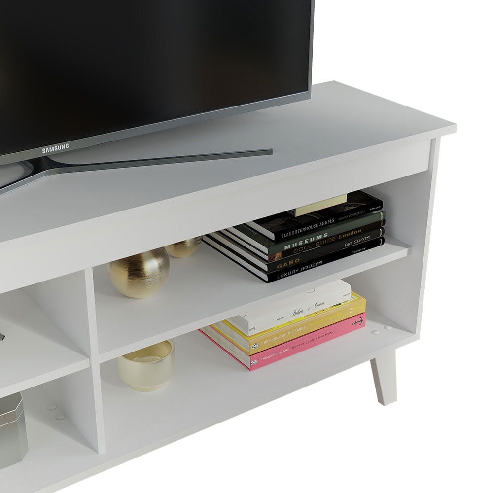 Madesa Compact TV Stand Cabinet with 4 Shelves and Cable Management for 50, 55 Inch TV Media Storage Unit Living Room and Bedroom Wooden Television Media Console – White