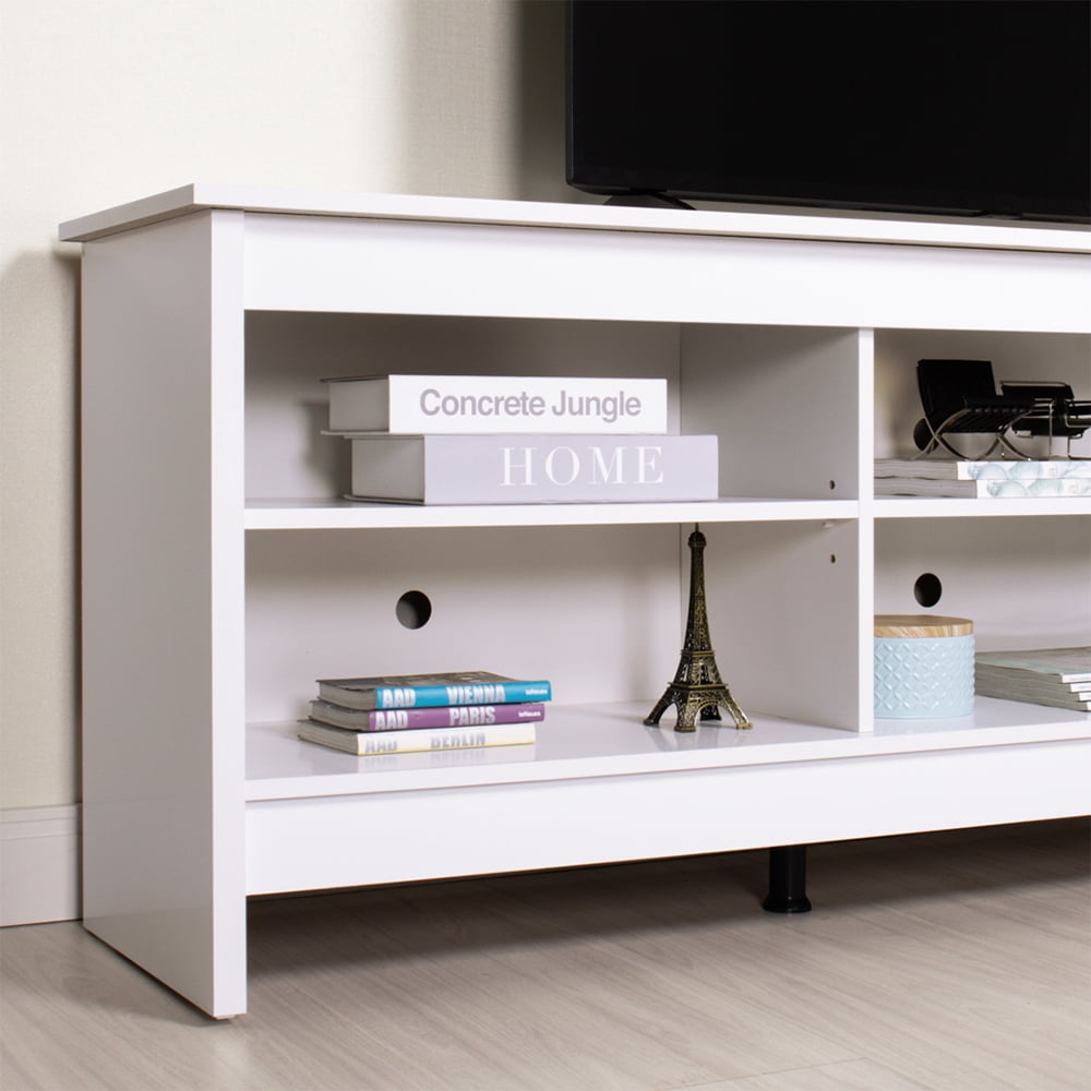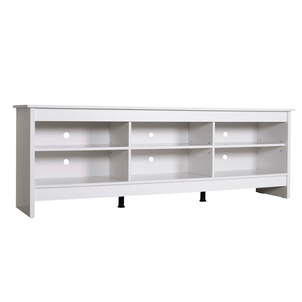 SPACIOUS TV STAND: Perfect for placing TVs, media consoles, and memorabilia. Adequate for both living room or bedroom AMPLE STORAGE: Features 6 spacious shelves and a wide sturdy tabletop DIMENSIONS: 24” H 14” D 71” L, Weight Capacity per Shelf: 11 lbs / 22 lbs, Tabletop Weight Capacity: 66lbs CABLE MANAGEMENT: Holes in the back allow cables for various devices to pass through HIGH QUALITY PARTICLE BOARD: Manufactured with Renewable Wood, protected with 7 layers of premium paint CLEAR INSTRUCTIONS: Includes user-friendly illustrated instructions and hardware for a simple assembly, along with QR Code for video instructions