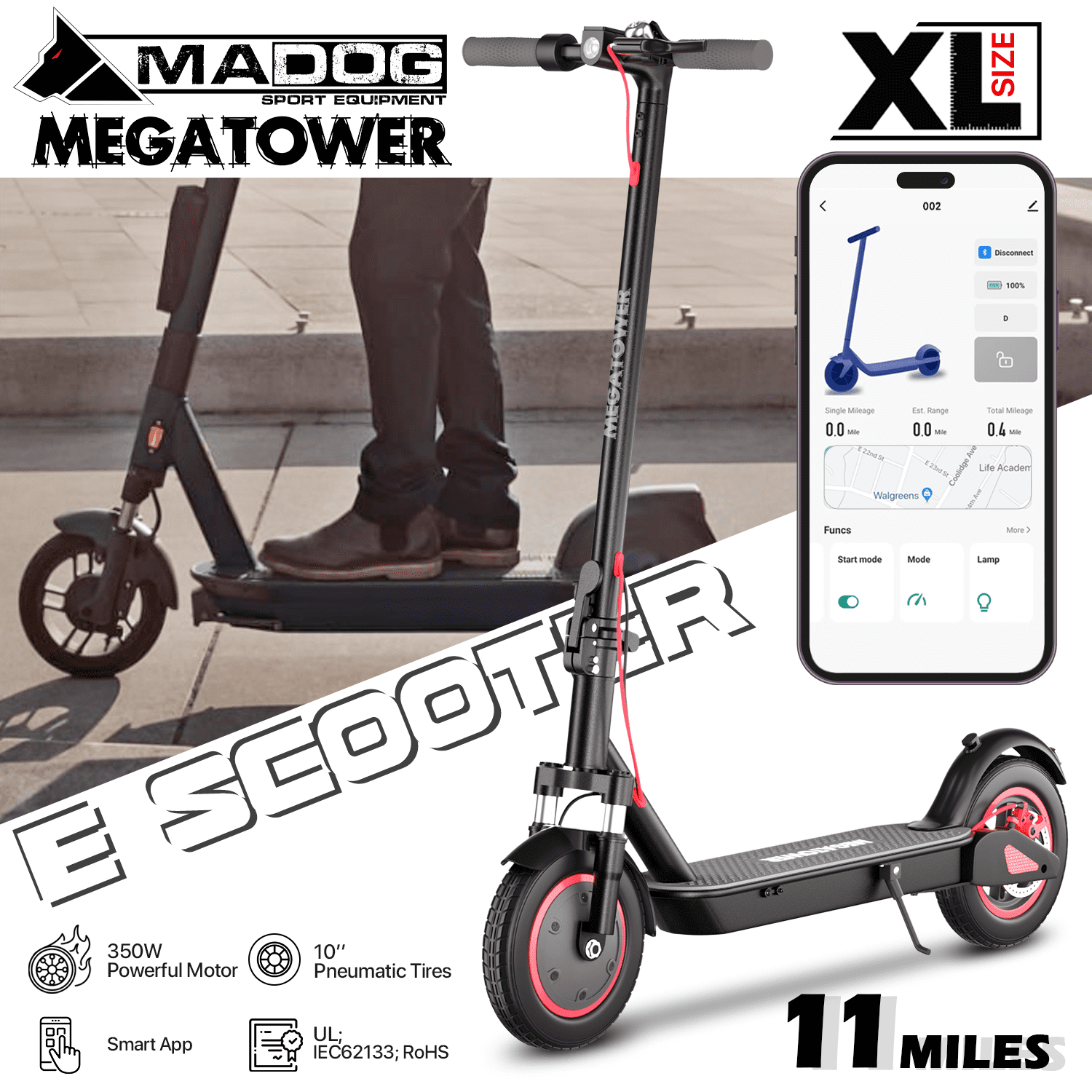 MADOG Electric Scooter, 350W Folding E-Scooter, 10″ Rubber Tires, Up to 11 Miles and 19Mph, Foldable Portable Escooter for Adult, Bluetooth APP Control, Black