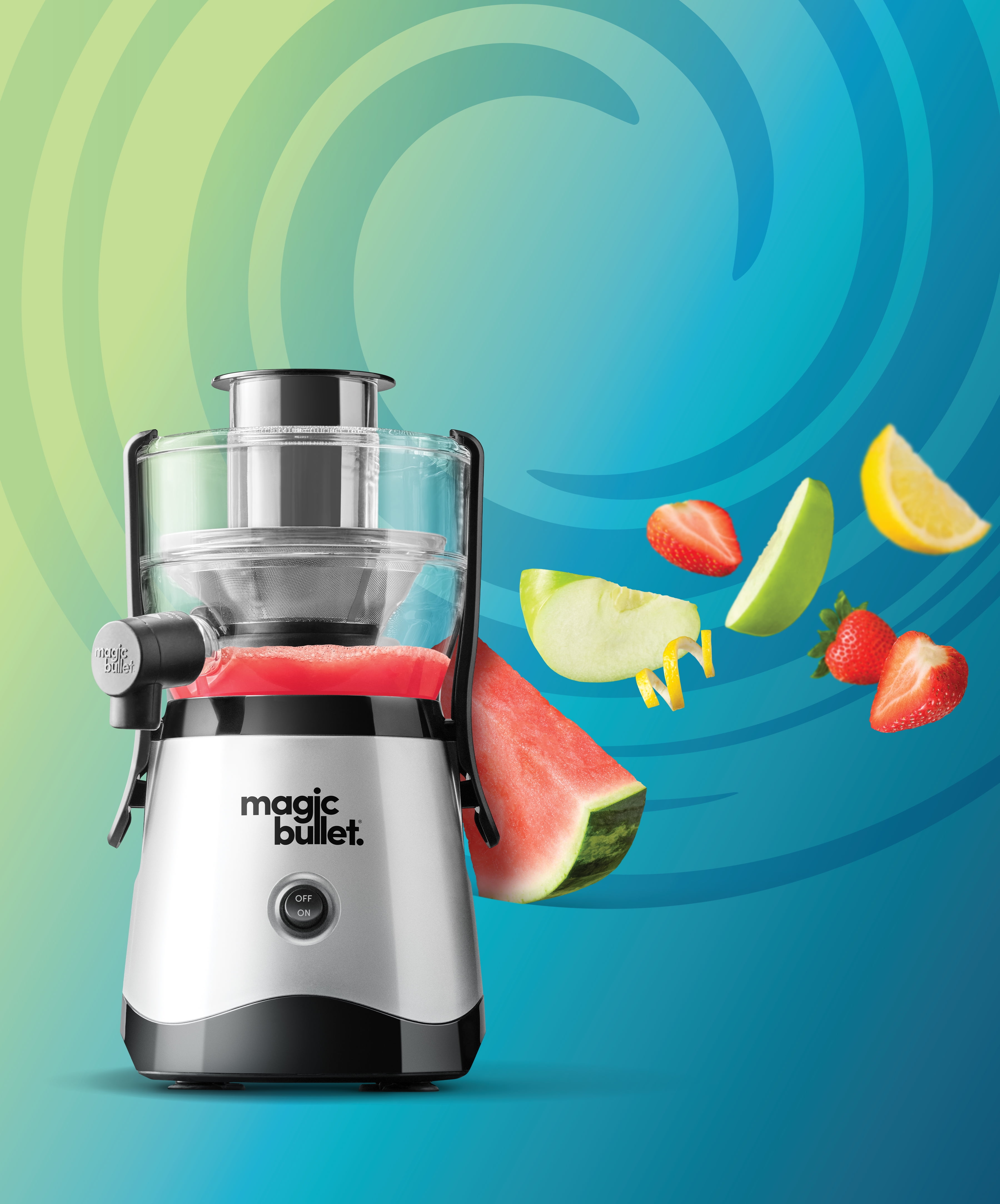 The magic bullet® Mini Juicer has a powerful 400-Watt motor that extracts all the juicy nutrition from your favorite fruits and veggies. Condition: New. Product built to North American & Canadian Electrical Standards We keep it tidy with top-rack dishwasher-safe attachments and a silicone spout cap that catches drips before they hit your countertop. The magic bullet® Mini Juicer has a roomy 2-inch feed chute fits larger chunks of your favorite ingredients. Translation: less chopping, more juicing. A roomy 2-inch feed chute fits larger chunks of your favorite ingredients. Translation: less chopping, more juicing.