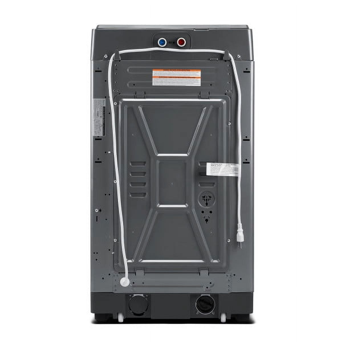 Magic Chef 1.7 Cu. ft. portable compact top load washer is perfect for limited spaces and smaller wash loads. Stainless steel interior tub is durable and resists rust and chipping. 6-wash programs provide choices for better fabric care; includes normal, heavy, bulky, delicates, quick and spin only 3-water level options help reduce wasteful use of water Electronic controls with LED display are easy to use, and a signal alerts you when wash is complete. Up to 800 RPM maximum spin speed for exceptional water extraction Delay start feature begins operation when it’s most convenient for you. Waterfall flow and filter improve washing performance. Portable, compact design for flexible convenience in small spaces 2 rear water inlets for both hot and cold water enable easy installation. Classic Gray color coordinates with any interior style Portable, compact washers are designed for smaller loads, do not overload. 1-year parts and labor warranty with carry-in service
