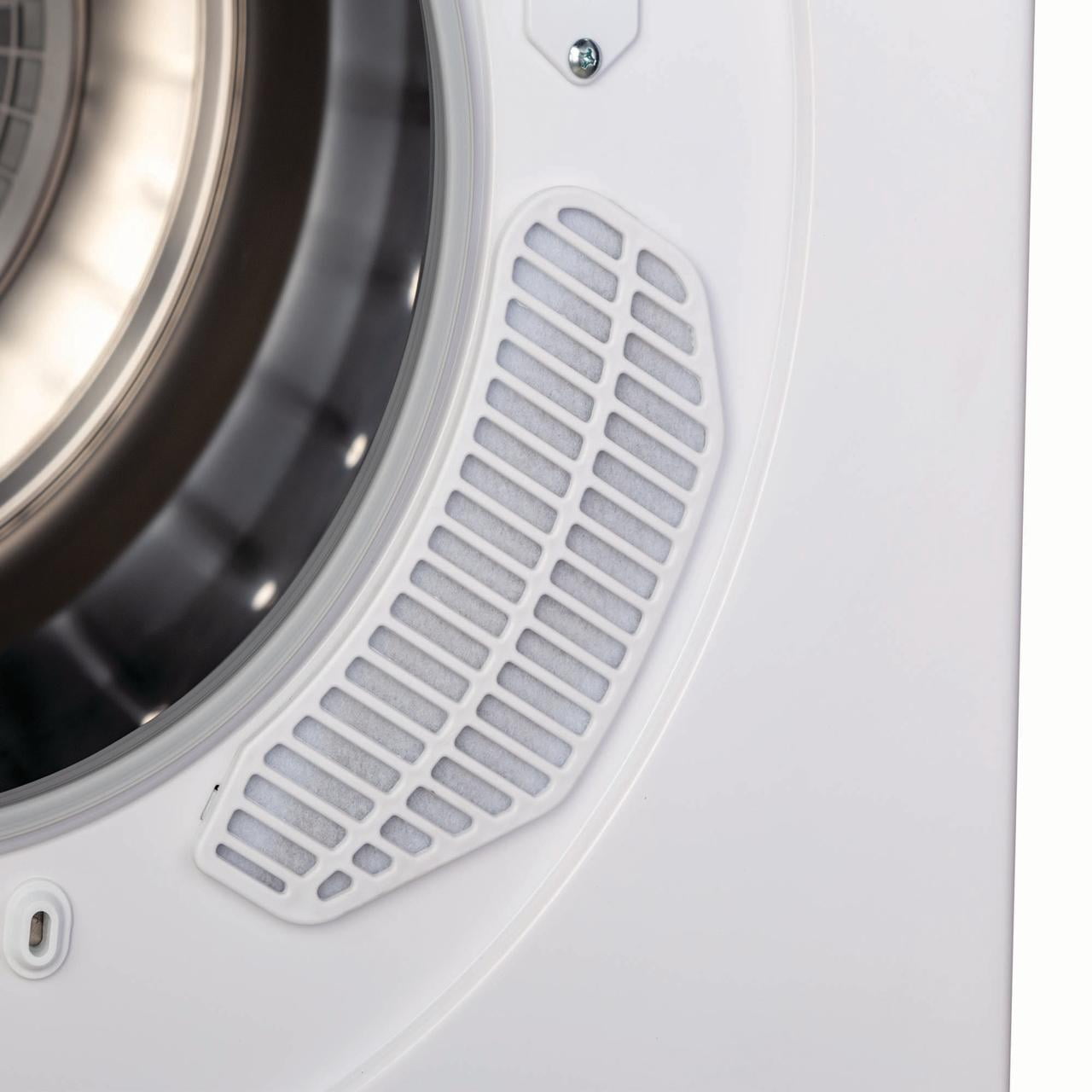 Drying options include cool, anti-wrinkle, warm, hot and air dry. Stainless steel inner drum promises long-lasting durability. Easily accessible lint filter ensures enhanced drying performance. Features high-quality positive temperature coefficient (PTC) heating element. Multiple installation options, including wall mountable. Easy-set dial for convenient, timed drying. ECO operates the dryer in an energy-saving mode. Sensor Dry automatically adjusts the heating time based on the moisture and humidity levels to efficiently dry your clothes. Compact dryer is perfect for apartments and smaller laundry spaces.