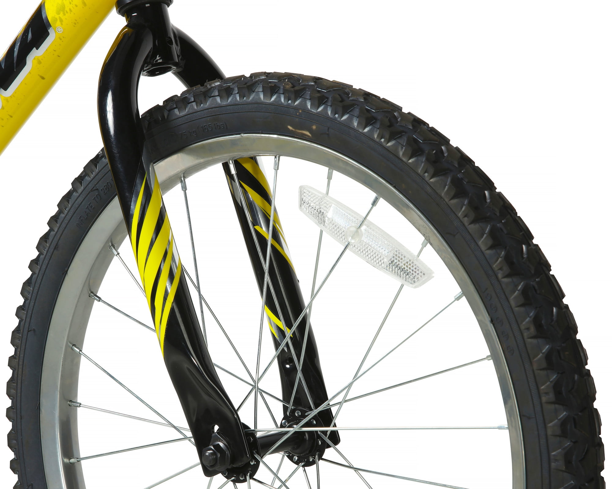 Sturdy steel frame with deluxe yellow crystalline-effect paint finish 20 inch wheel size for rider 6-10 years or 48-53″ tall Easy to use rear coaster brake Custom handlebar pad Kickstand included Limited lifetime warranty on frame and fork