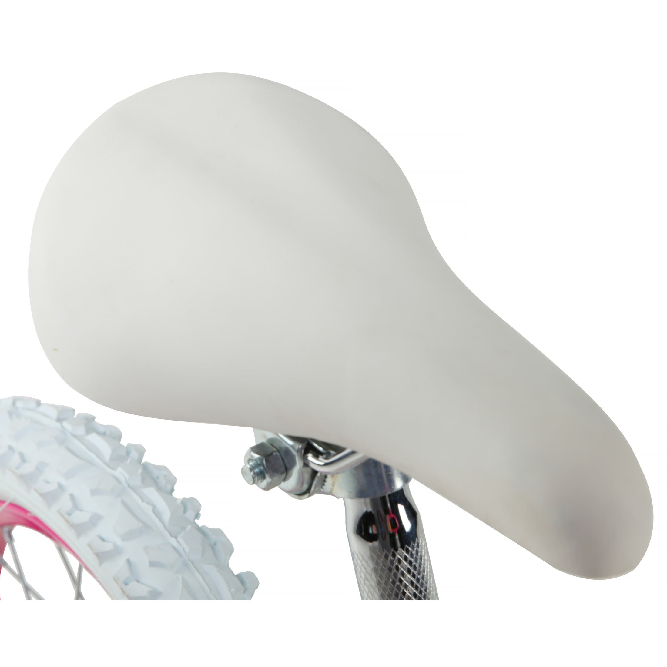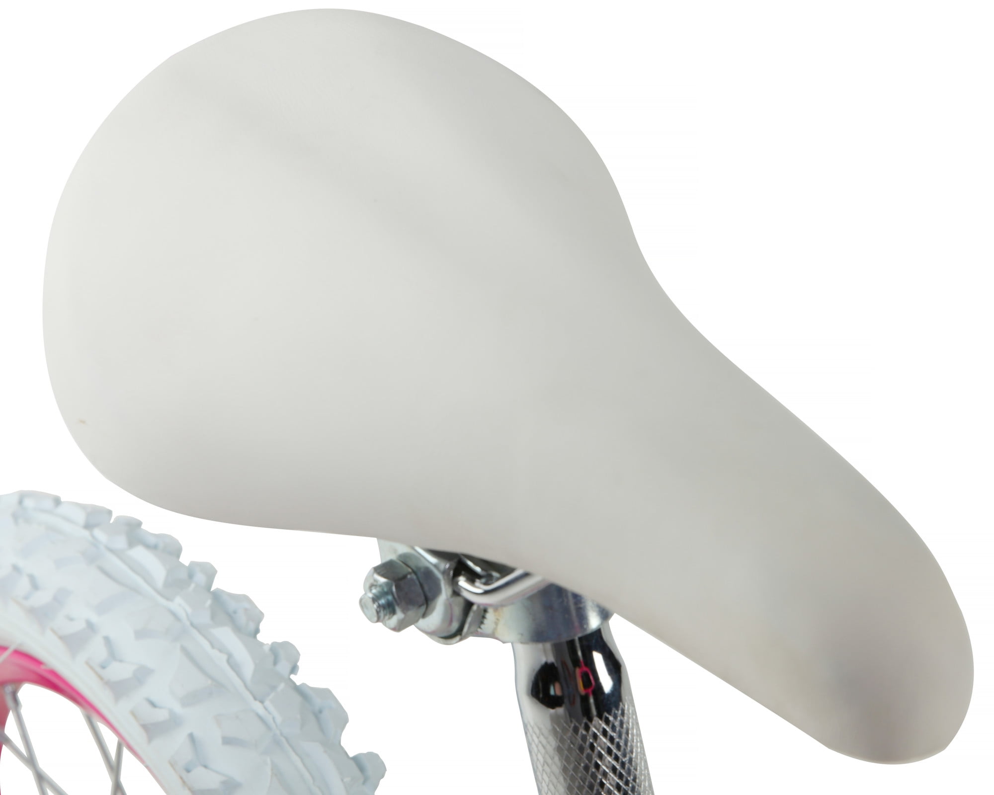 Sturdy steel frame with deluxe white and pink glitter-effect paint finish 16 inch wheel size for rider 4-8 years or 43-48″ tall Easy to use rear coaster brake Custom pad set Adjustable and removable training wheels Limited lifetime warranty on frame and fork