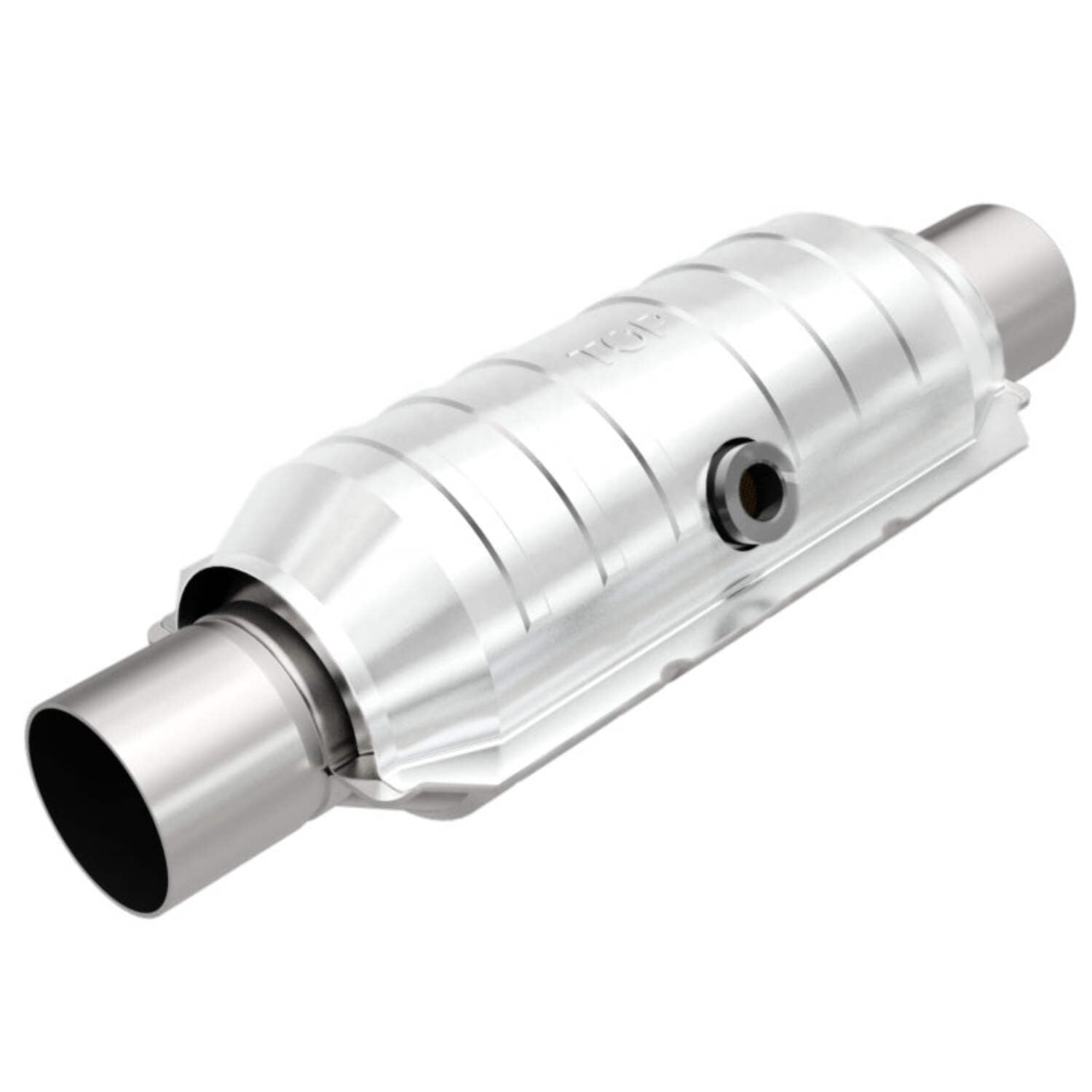 MagnaFlow 49 State Converter Universal-Fit Catalytic Converter; OEM Grade Series; 2.25 in. Tubing/Inlet/Outlet; Overall L-15.00 in.; O2 Sensor Loc Midbed Conv.; Not Air Tube Kit Adaptable; EO# D-193-137